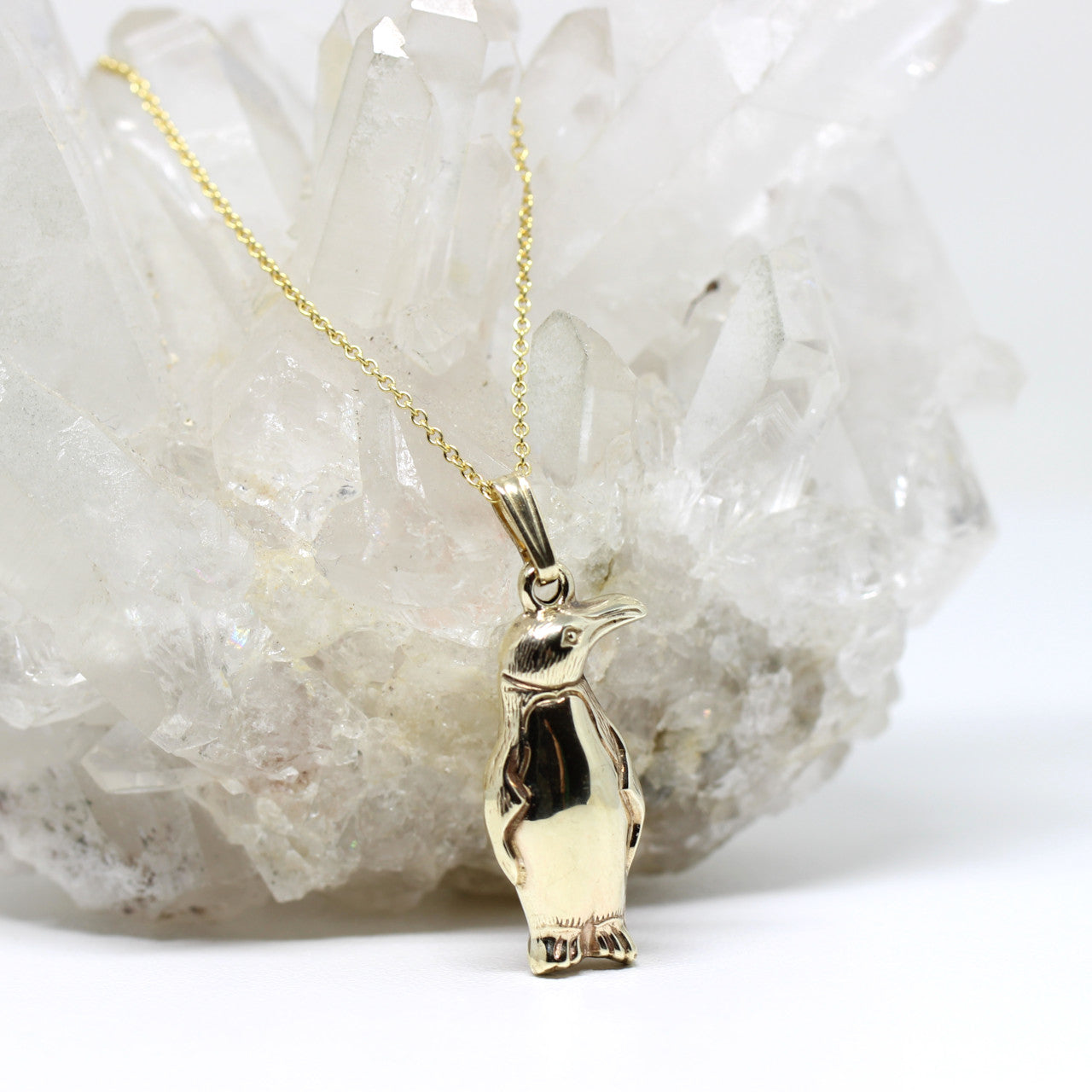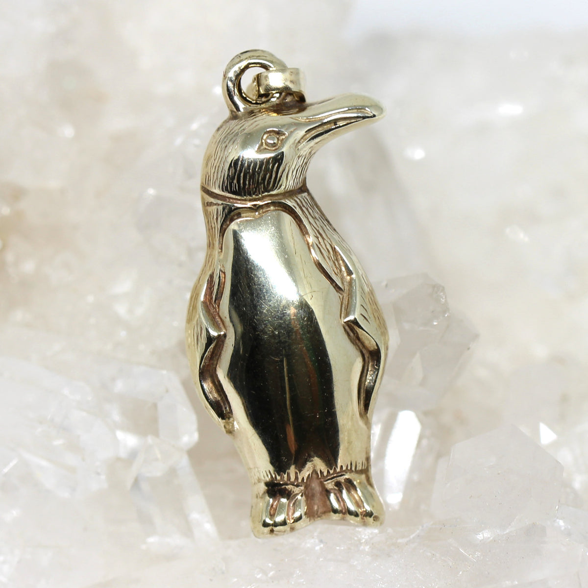 Dieses raffinierte Schmuckstück besticht durch sein süßes Motiv. Es handelt sich um einen Pinguin welcher plastisch gearbeitet ist. Der Anhänger ist aus 333er Gelbgold hergestellt.