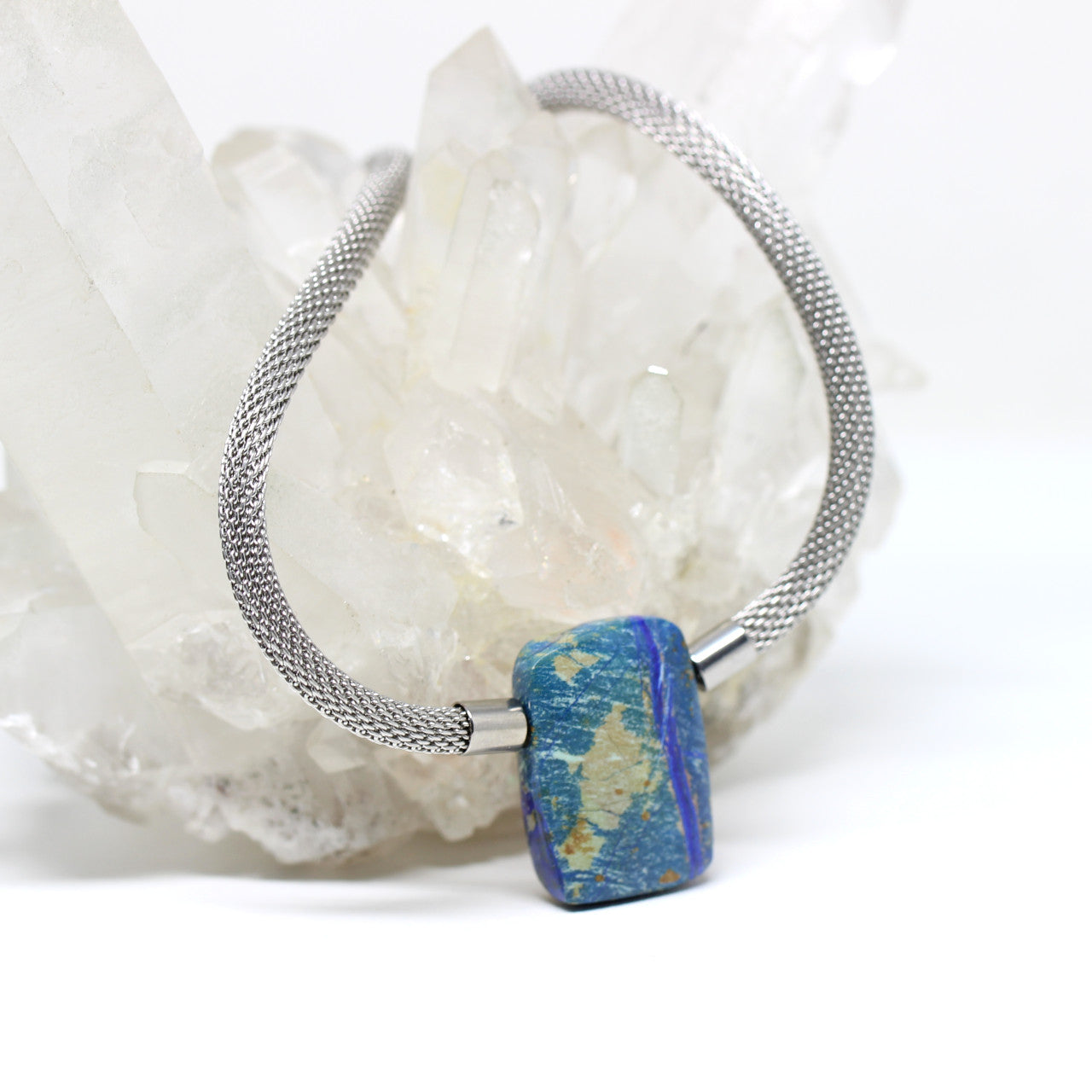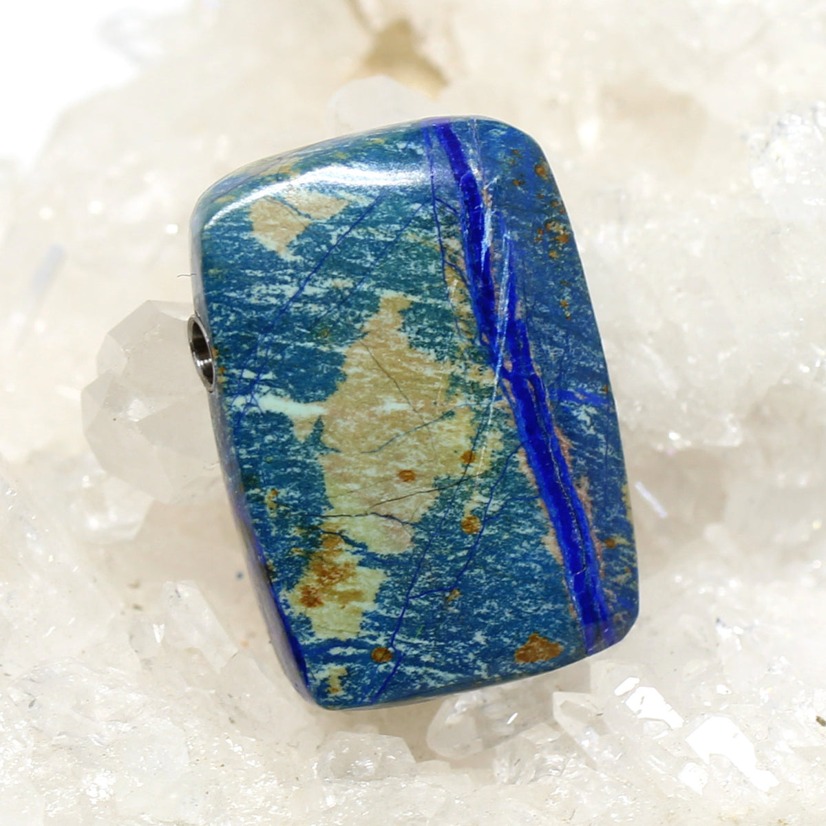 Dieser wunderbare Stein hat ein einzigartiges Muster welches wie ein Gemälde wirkt. Mit den ansprechenden Blautönen kombiniert mit dem Naturton, verwandelt er sich in ein attraktives Schmuckstück.