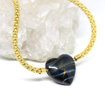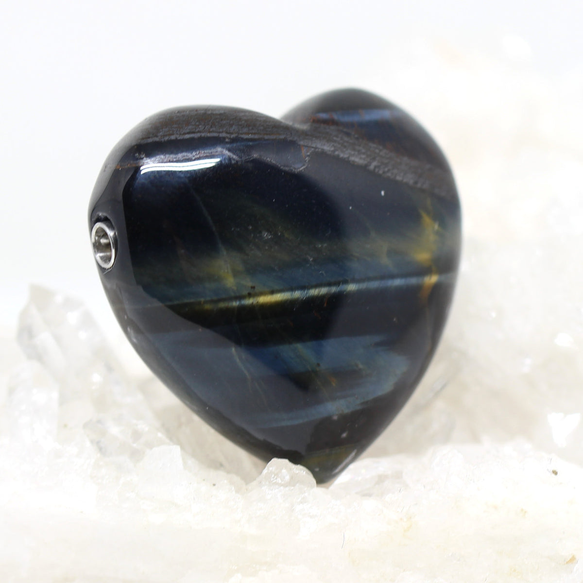 Das Falkenauge ist ein Verwandter des bekannteren Tigerauges. Der Unterschied besteht in der Farbe. Diese ist beim Tigerauge braun-schattiert und beim Falkenauge blau-grau-schattiert. Die Eigenschaften des Falkenauges sorgen für Überblick und Distanz. Er hilft bei Nervosität und innerer Unruhe. Er erleichtert in komplexen Situationen die Übersicht zu wahren und unterstützt bei Entscheidungsschwierigkeiten.