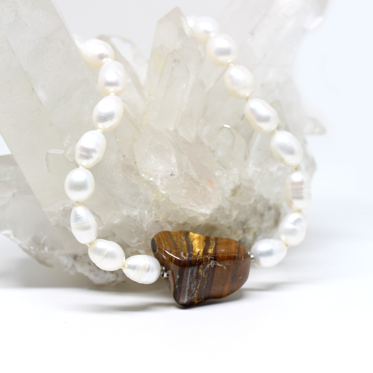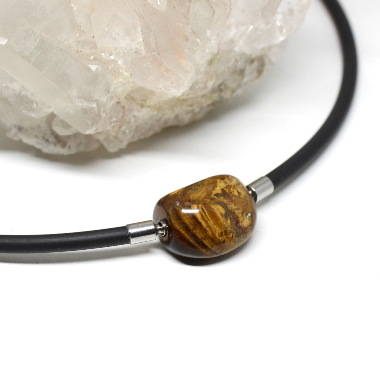Diese Wechselschließung ist ein ganz besonderes Schmuckstück. Das Mineral ist mit schimmernden Adern durchzogen, die im Licht ein außergewöhnliches Farbenspiel erzeugen. Tigerauge steht für Durchblick und Distanz. Man sagt ihm nach er würde gegen Stress und Belastungen. Er soll helfen in den Durchblick zu wahren, wenn vieles sehr schnell geschieht.