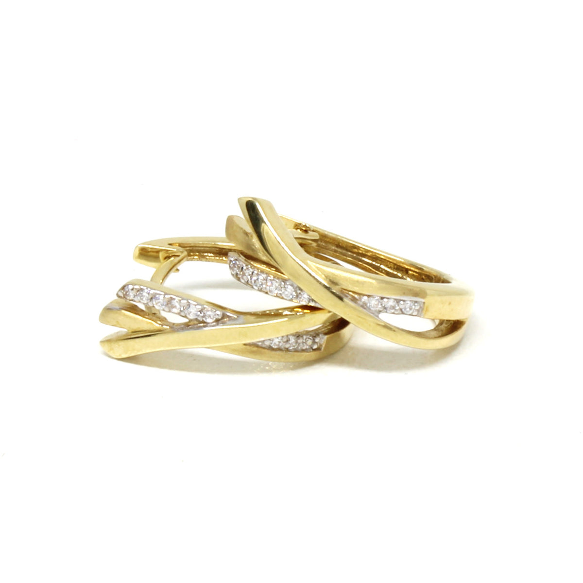 Dieser schöne Ohrschmuck ist nicht nur kreativ sondern auch zeitlos. Die Creolen sind so gearbeitet das sie auch Ohrlöcher verdecken welche etwas ausgedehnt sind. Sie sind sehr leicht verarbeitet und vermitteln somit ein optimales Tragegefühl. Das 333er Gelbgold ist poliert und teilweise mit Zirkonia ausgefasst.