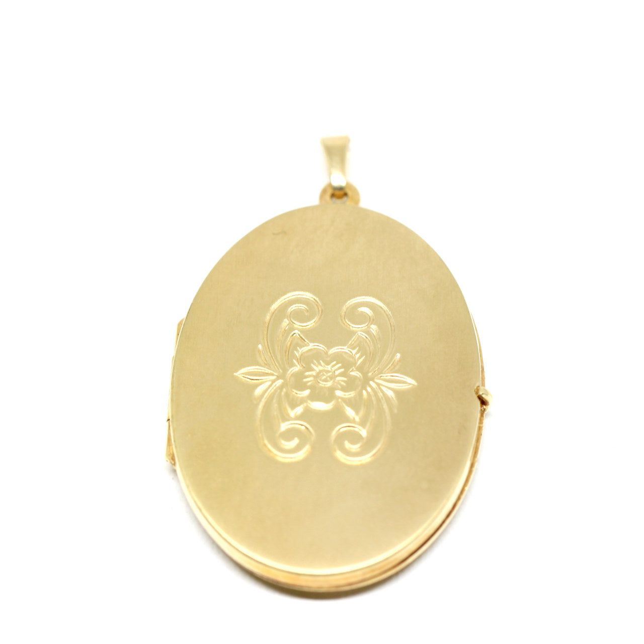 Goldmedallion Anhänger für Ihre Fotos, oder was einem sonst noch so wichtig ist. Dieses Medallion ist aus 333er Gelbgold leicht mattiert. Durch seinem dezenten Blumenmuster eine echte Augenweide.