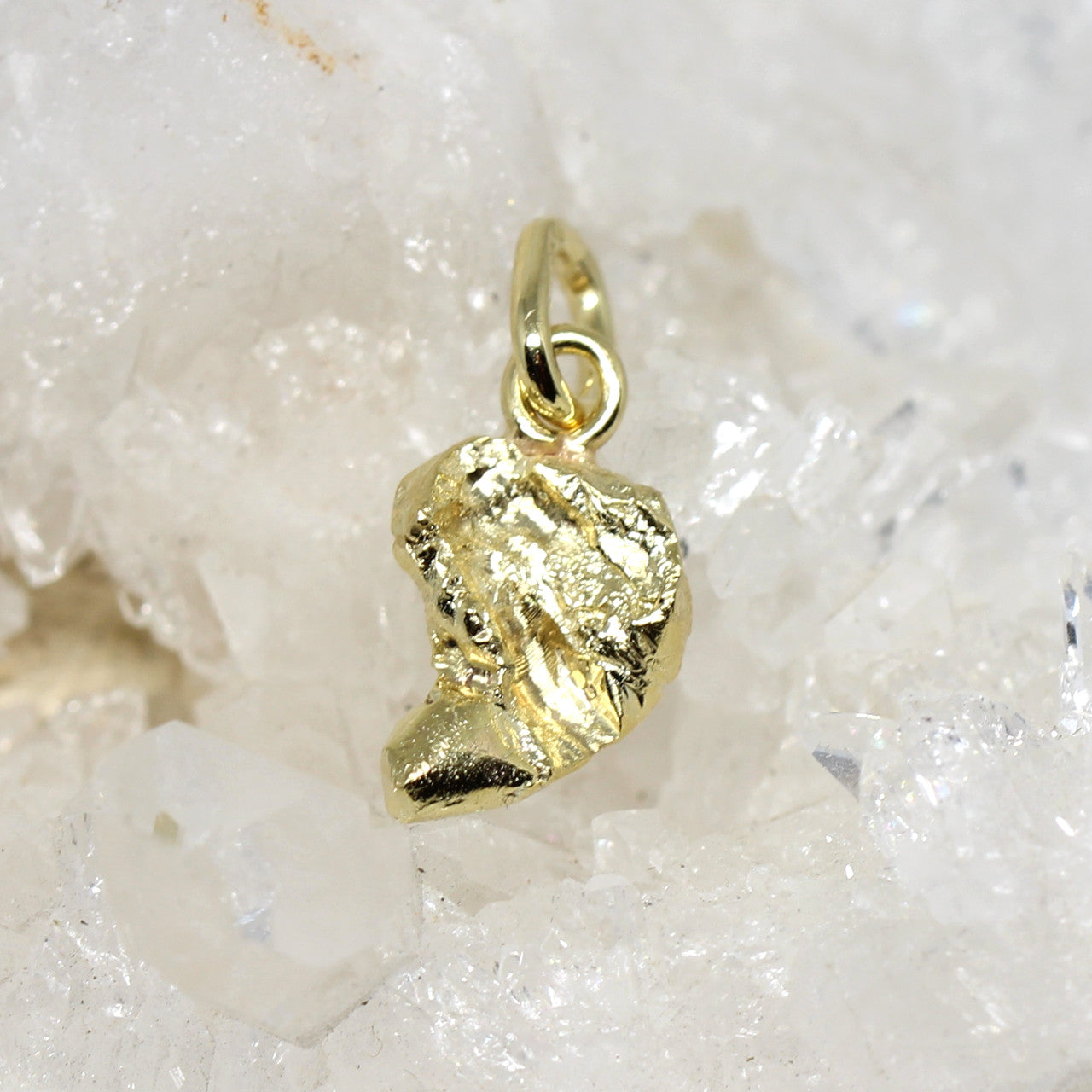 Jeder kennt sie, die berühmten Goldnugget. Sie sind und bleiben ein beliebtes Schmuckstück. Dieses Nugget sieht ganz besonders aus. Es ist ganz zufällig entstanden. Das Nugget ist aus 585er Gelbgold und in unserer Goldschmiede angefertigt. Jedes Nugget  ist ein Unikat, und Sie bekommen genau dieses.