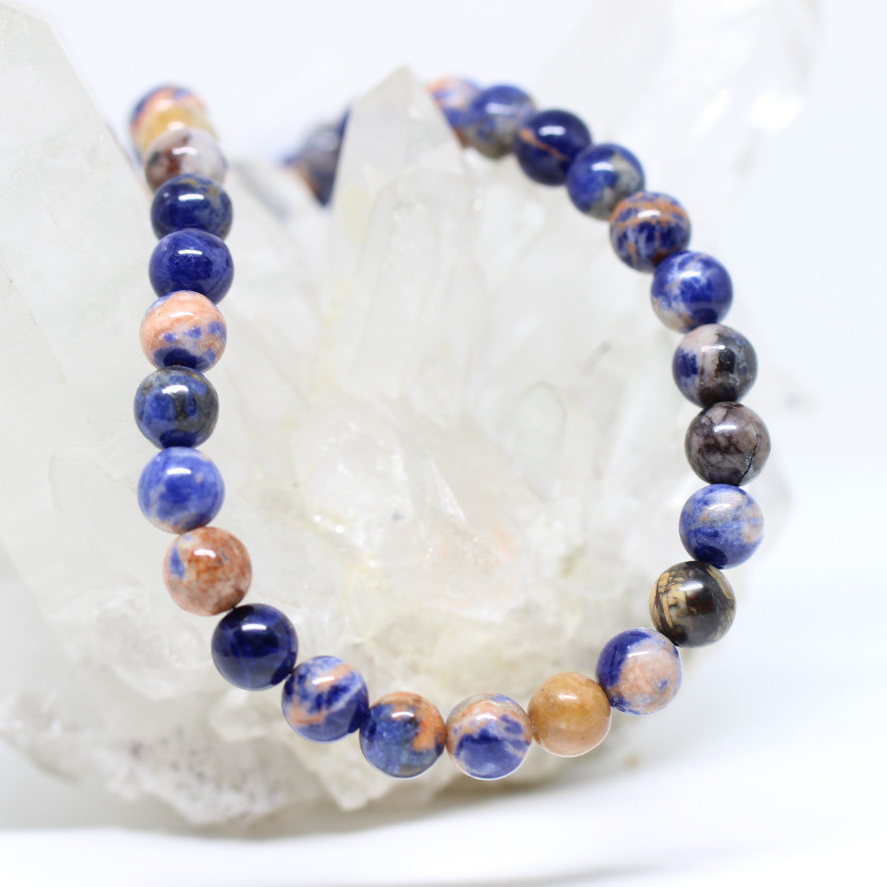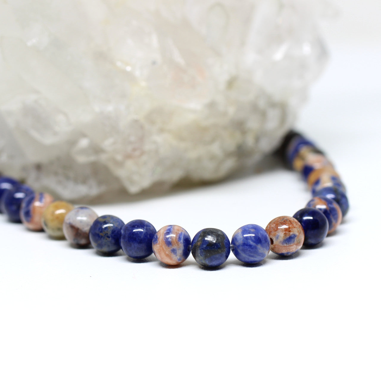 Der Sodalith zählt wohl zu den beliebtesten Schmucksteinen. Sein wunderbarer Blauton lässt sich wunderbar zu Jeans tragen. Er soll Idealismus und Bewusstheit fördern. Als Wechselkette lässt sich dieser blaue Stein wunderbar mit Kugelschließen kombinieren.