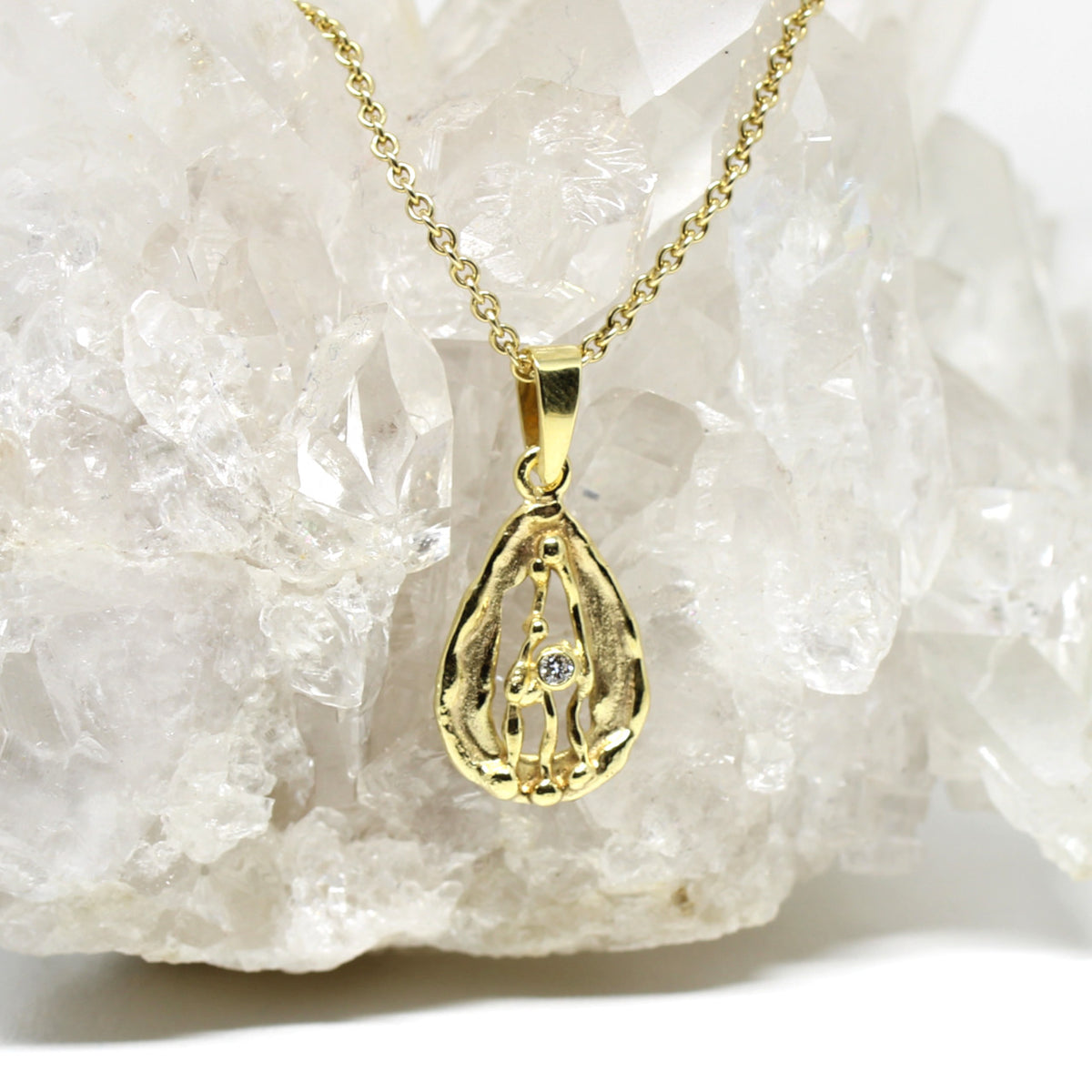 Tragen Sie ein Stück handgefertigte Kunst als besonderes Schmuckstück. Dieser filigrane Anhänger ist modern und zeitlos zugleich. Wir haben ihn in unserer Goldschmiede hergestellt und als Material 333er Gelbgold gewählt. In einer zarten Goldkette getragen kommt das Schmuckteil am besten zur Geltung. Ein funkelnder Zirkonia rundet das ganze ab.