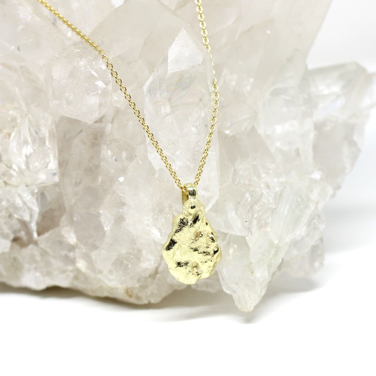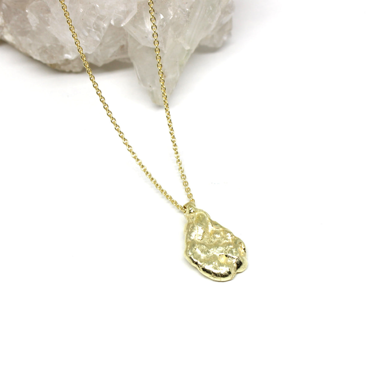 Jeder kennt sie, die berühmten Goldnugget. Sie sind und bleiben ein beliebtes Schmuckstück. Dieses Nugget sieht ganz besonders aus. Es ist ganz zufällig entstanden. Das Nugget ist aus 585er Gelbgold und in unserer Goldschmiede angefertigt. Jedes Nugget  ist ein Unikat, und Sie bekommen genau dieses.