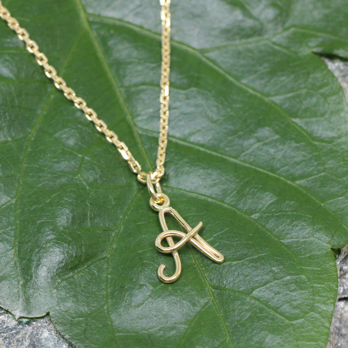 Die kleinen Buchstaben haben wir aus 333er Gelbgold hergestellt und poliert. Der zarte Schriftzug ist Schreibschrift und somit wirkt er weich und edel. Mit seiner idealen Größe wirkt er dezent und trägt in keinster Weise auf. Kombiniert mit einer filigranen Halskette ist das hochwertige Schmuckstück perfekt.