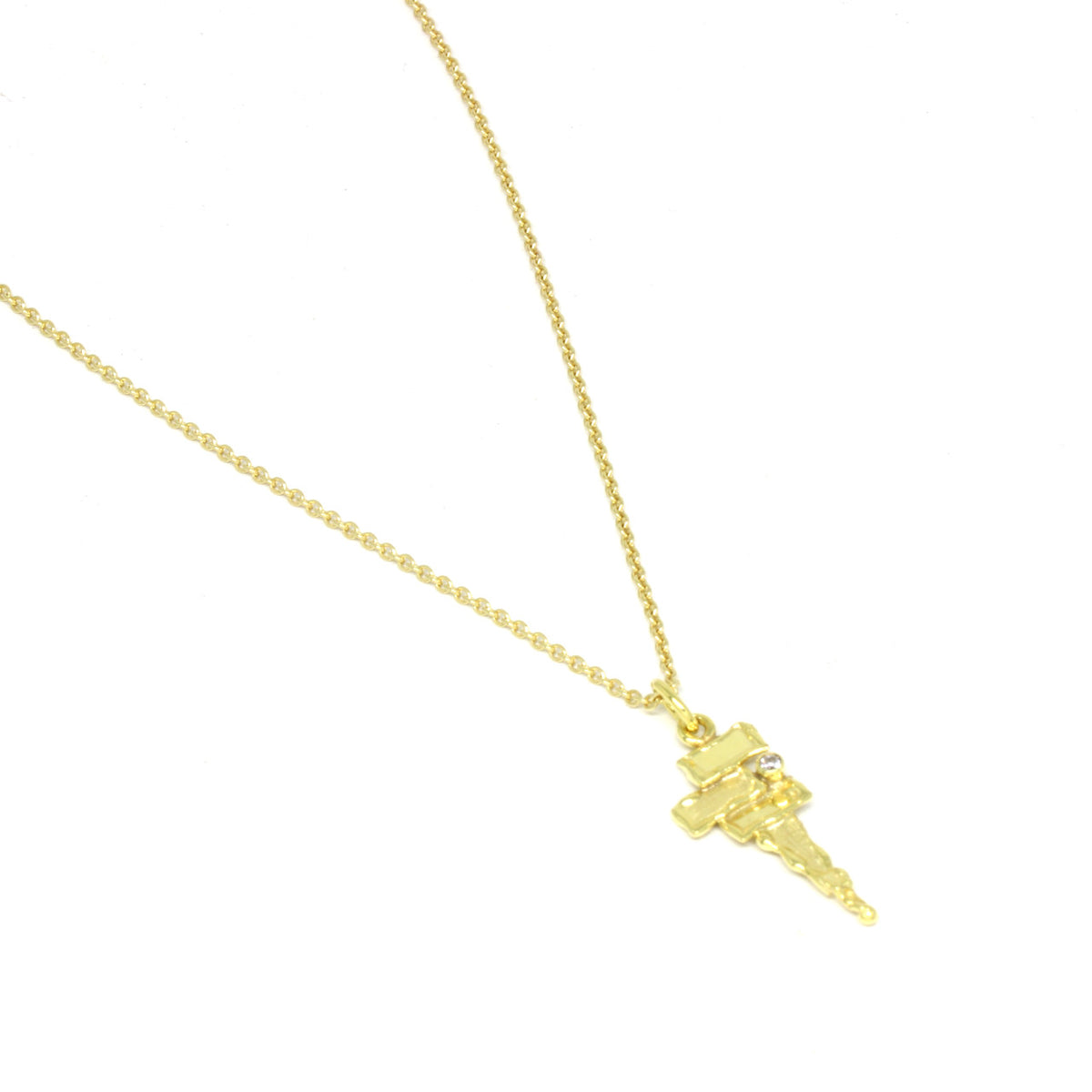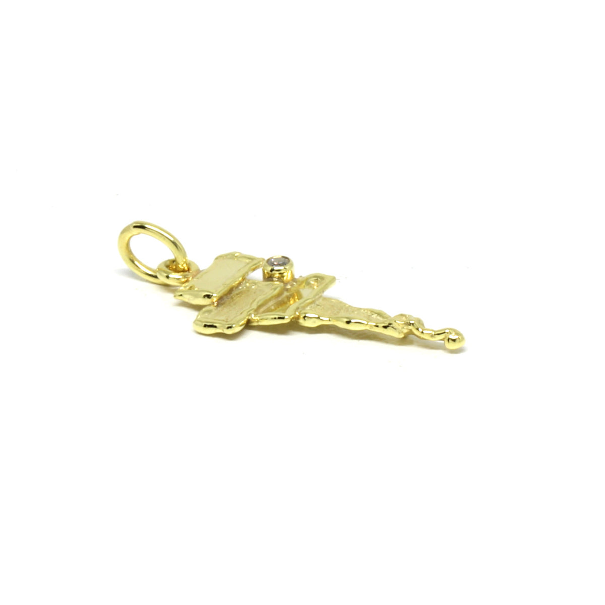 Wunderschöner Anhänger in 585er Gelbgold mit Brillant. Das Individuelle Kunstwerk kommt direkt aus unserer Meisterwerkstatt. Das besondere Augenmerk liegt bei der handwerklichen Struktur. Die Oberfläche der einzelnen Elemente haben wir sowohl mattiert, als auch poliert. Somit erhält der Anhänger eine interessante Oberfläche. Als zusätzlichen Eyecatcher haben wir einen funkelnden Brillanten eingesetzt.