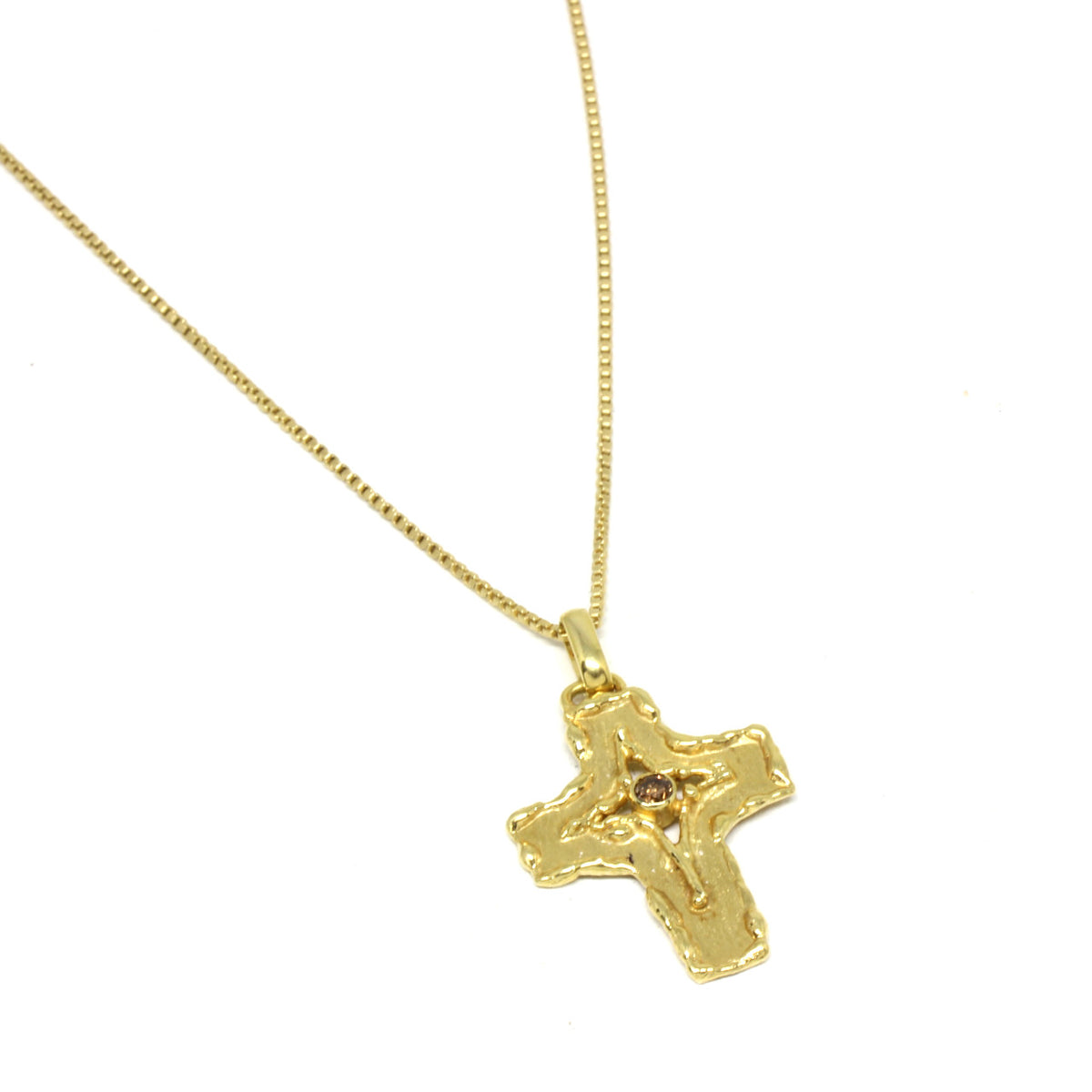 Dieses beeindruckende Schmuckstück punktet mit seiner Handwerkskunst. Man kann direkt erkennen das es sich hierbei um ein Schmuckstück im Goldschmiedestil handelt. Wir haben das Kreuz mit viel Liebe zum Detail hergestellt. Das filigran verarbeitete 585er Gelbgold wird mit einem champagnerfarbenen Brillanten gekrönt. Die warme Farbe des Gelbgoldes und des Edelsteines harmonieren in Perfektion miteinander und ergeben ein famoses Schmuckstück.