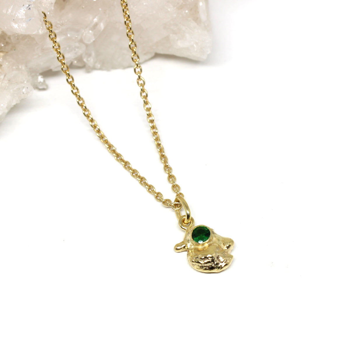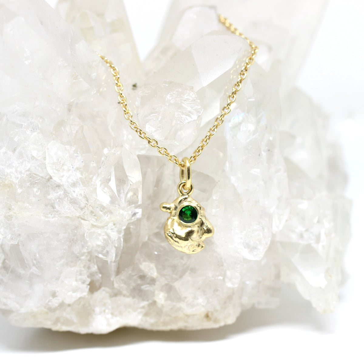 Anhänger Nugget in 333 Gelbgold mit grünem Granat