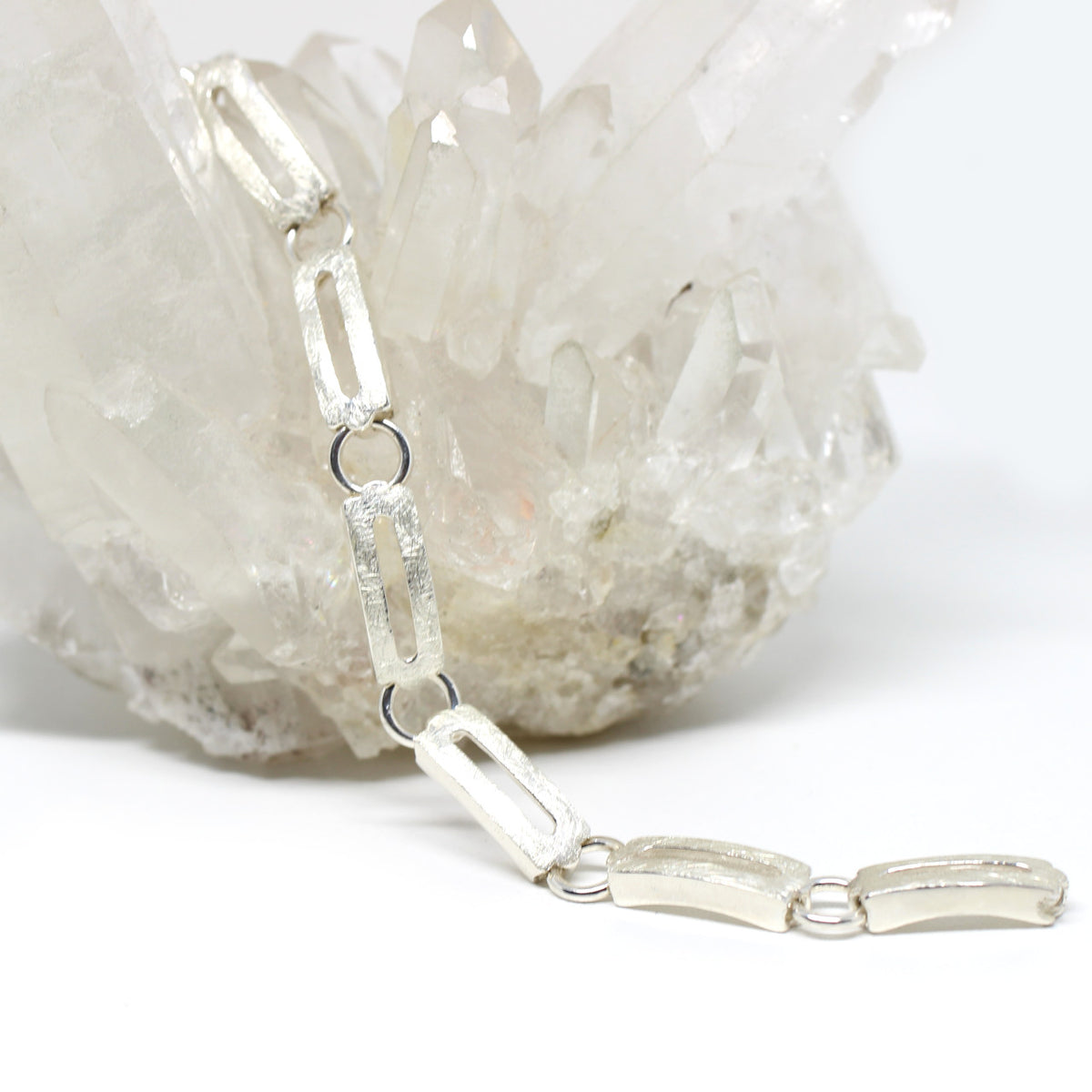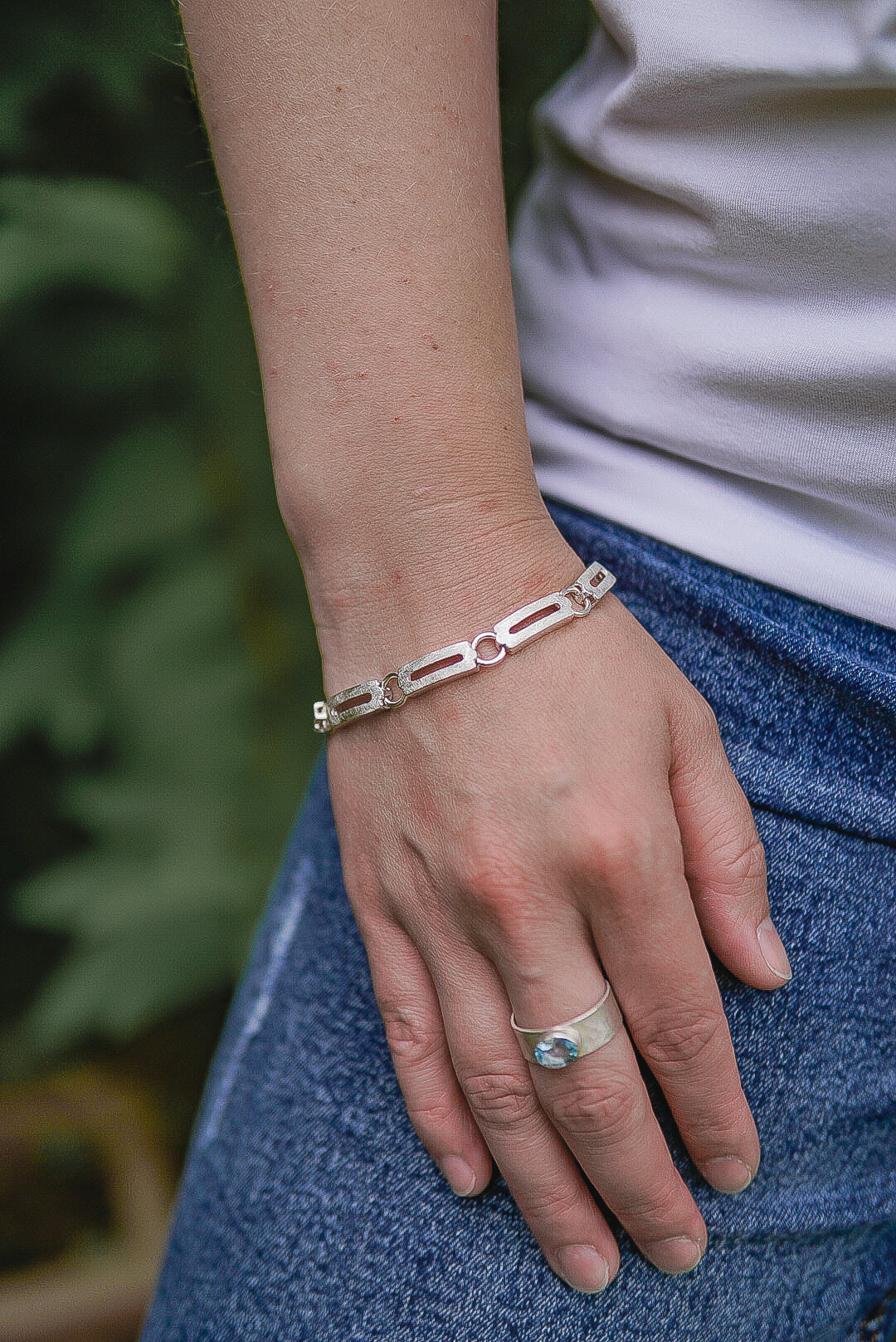 Dieses individuelle Schmuckstück ist aus 925er Sterlingsilber hergestellt. Bei diesem Armband ist keinerlei Standard zu erkennen. Es ist durch und durch ein Armschmuck der sich von Gewöhnlichkeit abhebt.