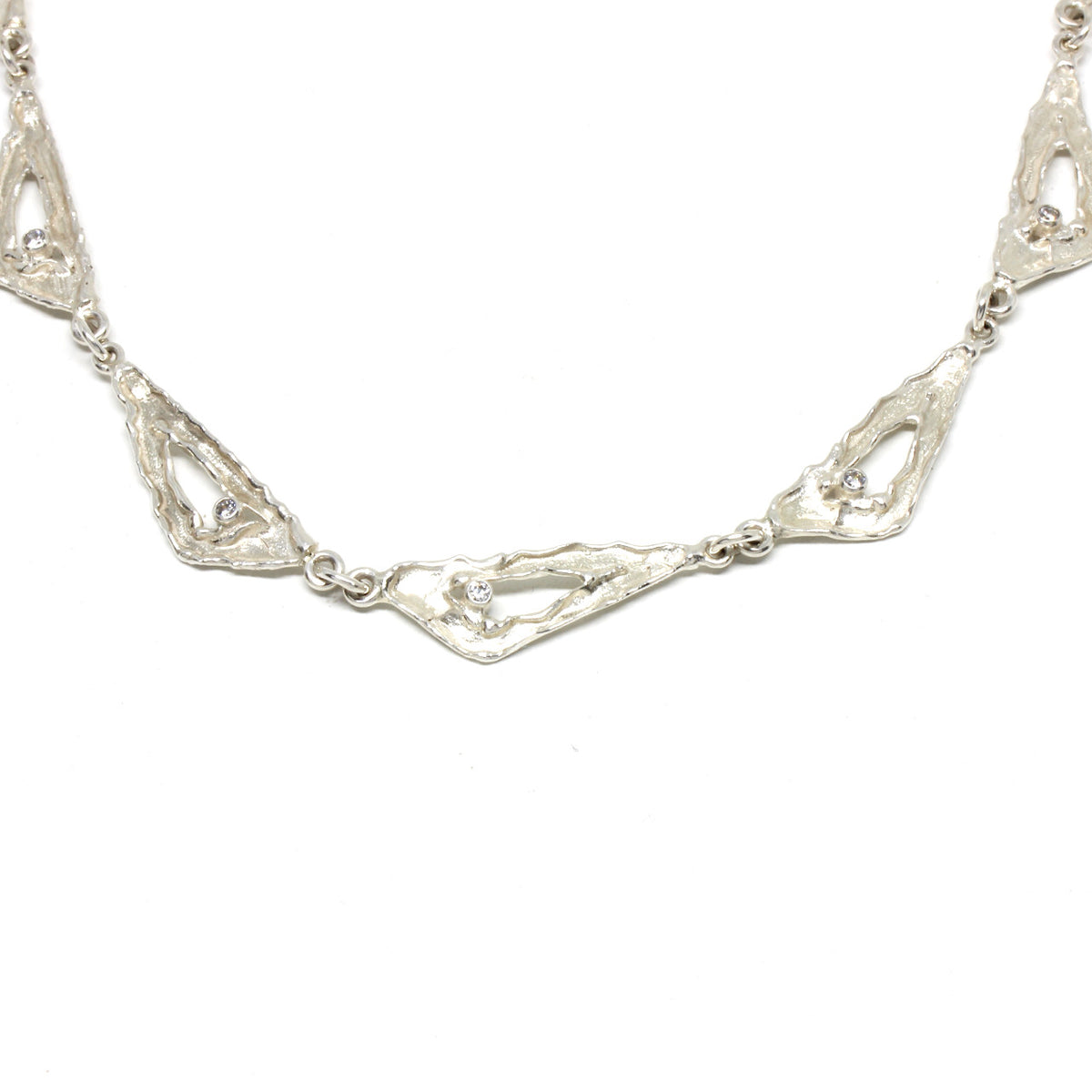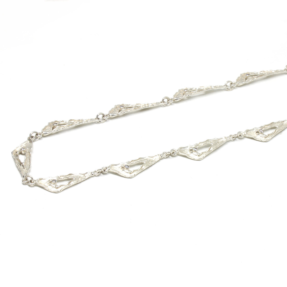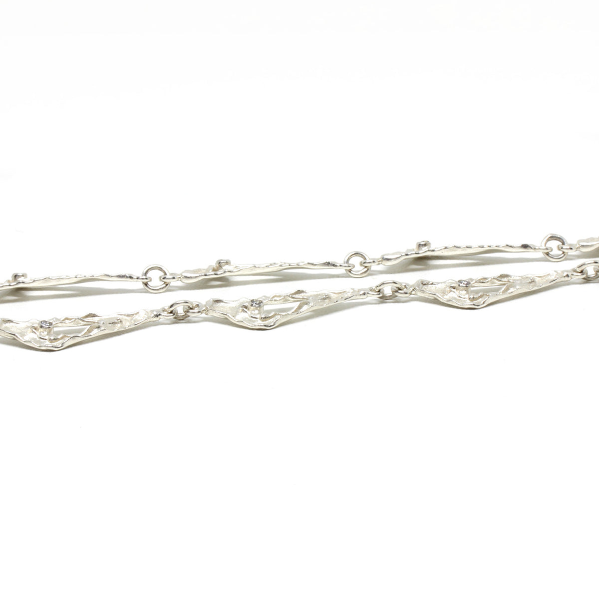 Dieses bezaubernde Collier aus 925er Sterlingsilber liegt super an und ist für jeden Anlass ein echter Hingucker. Unsere spezielle Oberflächenbearbeitung macht es zu einem echten Unikat. Als kleine Effekte haben wir in jedes Element einen kleinen Zirkonia eingearbeitet.