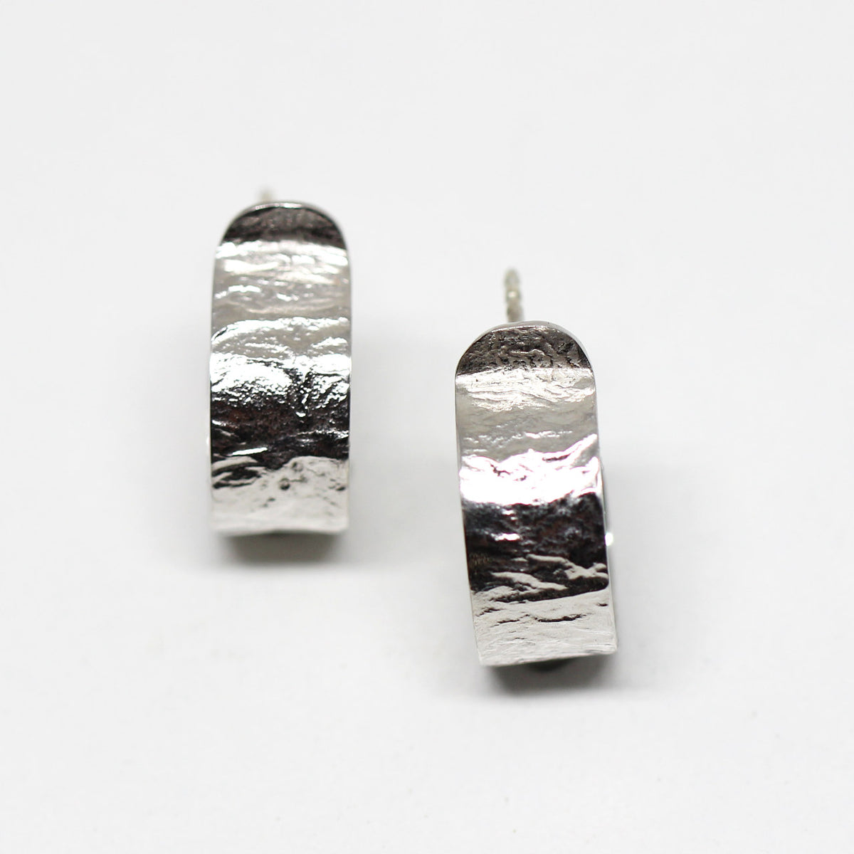 Diese schönen Creolen sind aus 925er Sterlingsilber handgefertigt. Die Oberfläche ist in unserer Technik bearbeitet, und erhält dadurch eine spezielle Optik. Die Creolen sind rhodiniert, das bedeutet das die Ohrringe einen Anlaufschutz haben.