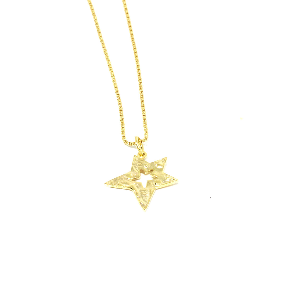 Du liebst Sterne? Dann ist dieser handgefertigte Stern aus 333er Gelbgold genau das richtige für dich. Die besondere Form und die individuelle Oberflächenbearbeitung machen den Anhänger zu einem tollen Schmuckstück.