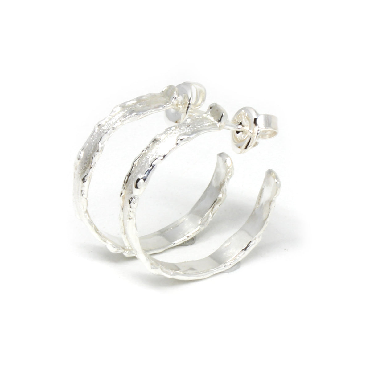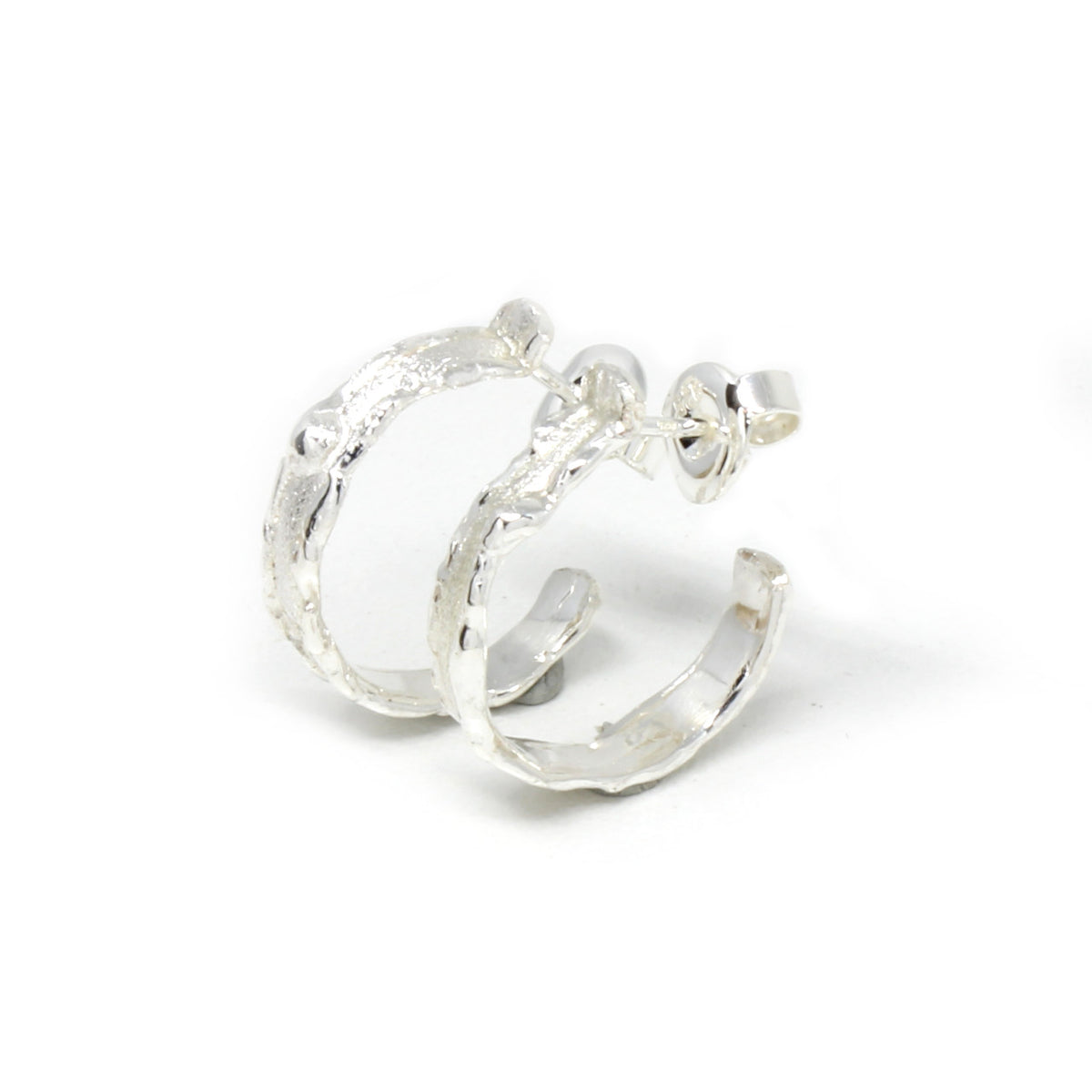 Diese Halbcreolen sind aus 925er Sterlingsilber handgefertigt und sitzen perfekt am Ohr. Die Oberfläche ist mit unserer Spezialtechnik bearbeitet, und erhält dadurch eine Optik, die für die Optik von Menschen mit Behinderungen geeignet ist. Es handelt sich um sogenannte Halbcreolen, das bedeutet, sie laufen nur halb ums Ohr und sind dann offen. Geschlossen werden sie mit einem Stecker.