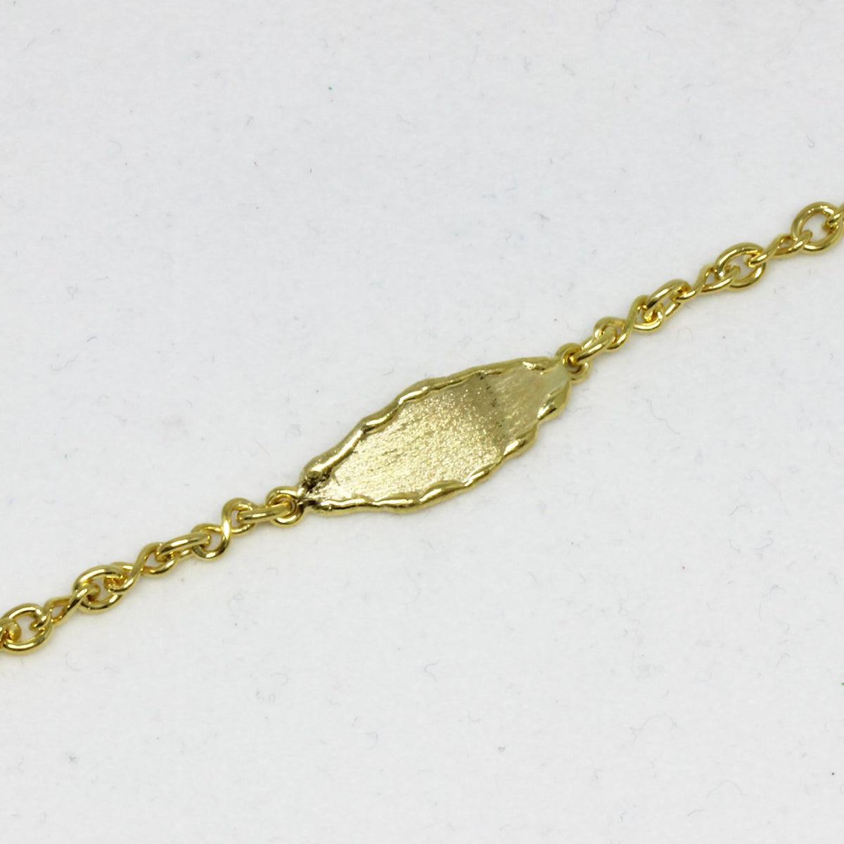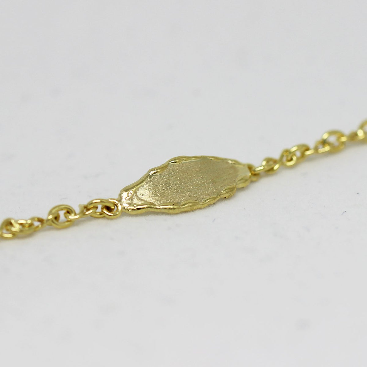 Das Identband ist ein Klassiker im Bereich Taufe und Geburt. Ein persönliches Geschenk das durch unsere Handarbeit noch individueller wird. Standartgemäß wird auf die Vorderseite der Name und auf die Rückseite das Geburts- oder Taufdatum graviert. Als länge des Armbändchens fertigen wir im Normalfall Standartlängen für Babys an. Es besteht bei uns jedoch auch die Möglichkeit eine Zwischenöse einzuarbeiten und später wenn die Kinder größer sind, das Armband zu verlängern. Das Material bei diesem Armband ist 585er Gelbgold.