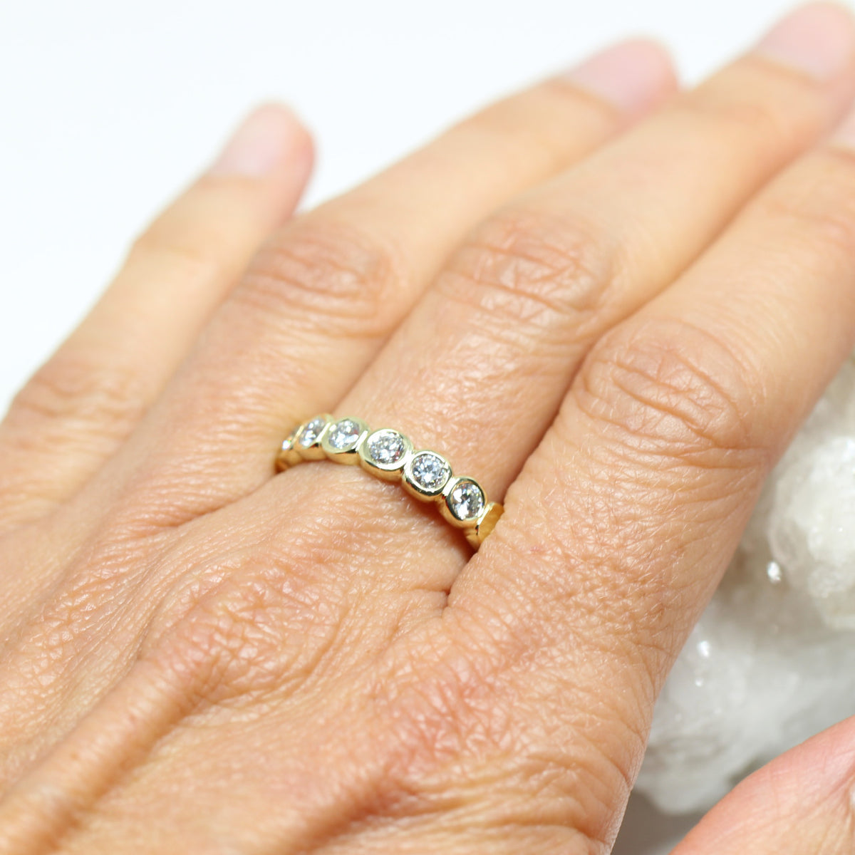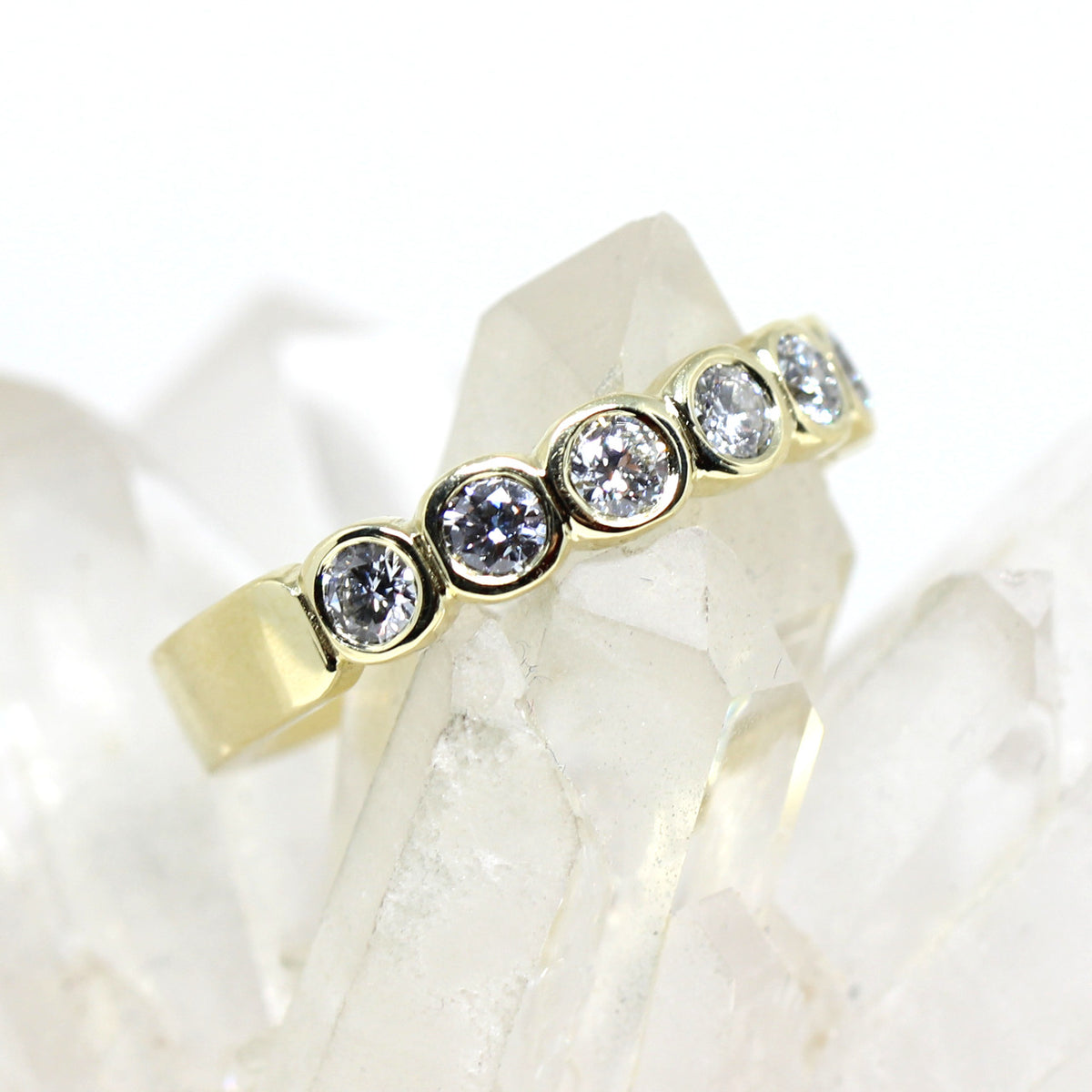 Dieses aufregende Schmuckstück ist nicht nur hochwertig sondern auch nachhaltig! Diesen Memoryring haben wir in unserem kleinen Atelier handgeschmiedet. Wir haben edles 585er Gelbgold verarbeitet. Doch das Besondere an diesem Ring sind die 6 Labordiamanten die in einer Intensität schimmern das man den Blick nicht abwenden kann. Der Vorteil der Lab-Grown Diamanten ist, dass sie nachhaltig und umweltfreundlich produziert werden. Optisch und qualitativ stehen sie dem Naturdiamanten in nichts nach.