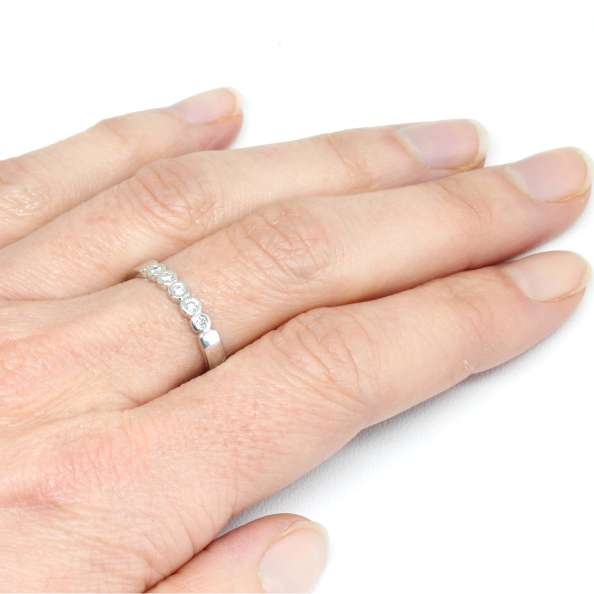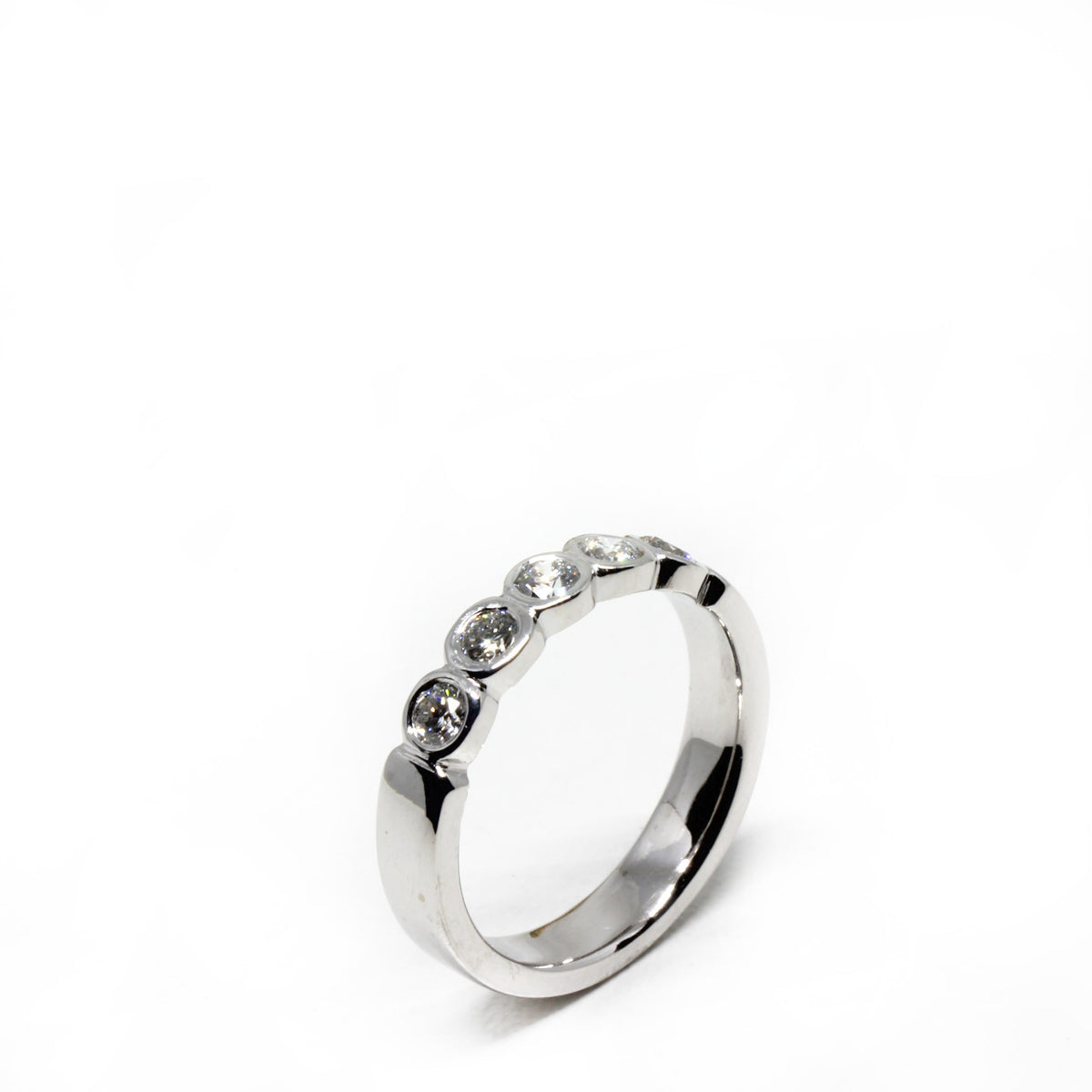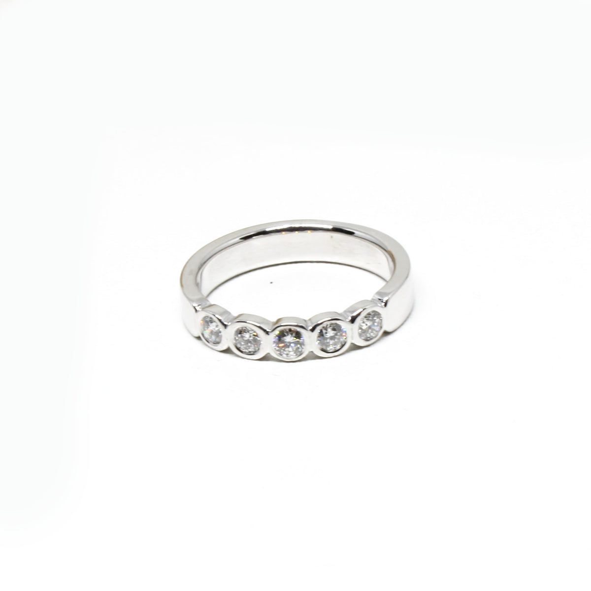 Dieser klassische und traumhafte Ring aus 585er Weißgold ist ein wunderschönes Schmuckstück für die Ewigkeit. Der massive Ring ist mit 5 Brillanten bestückt, die insgesamt 0,50 ct oder 0,17 ct erreichen, je nachdem für welches Modell du dich entscheidest. Die Steine sind direkt in das Edelmetall eingearbeitet und somit wird ein lästiges Hängenbleiben vermieden. Aus diesem Grund eignet sich das Schmuckstück sehr gut für den Alltag und man kann ihn wunderbar zu einem anderen Ring dazu kombinieren. Er eignet sich auch sehr gut als Verlobungsring, da er problemlos zum späteren Ehering gesteckt werden kann.