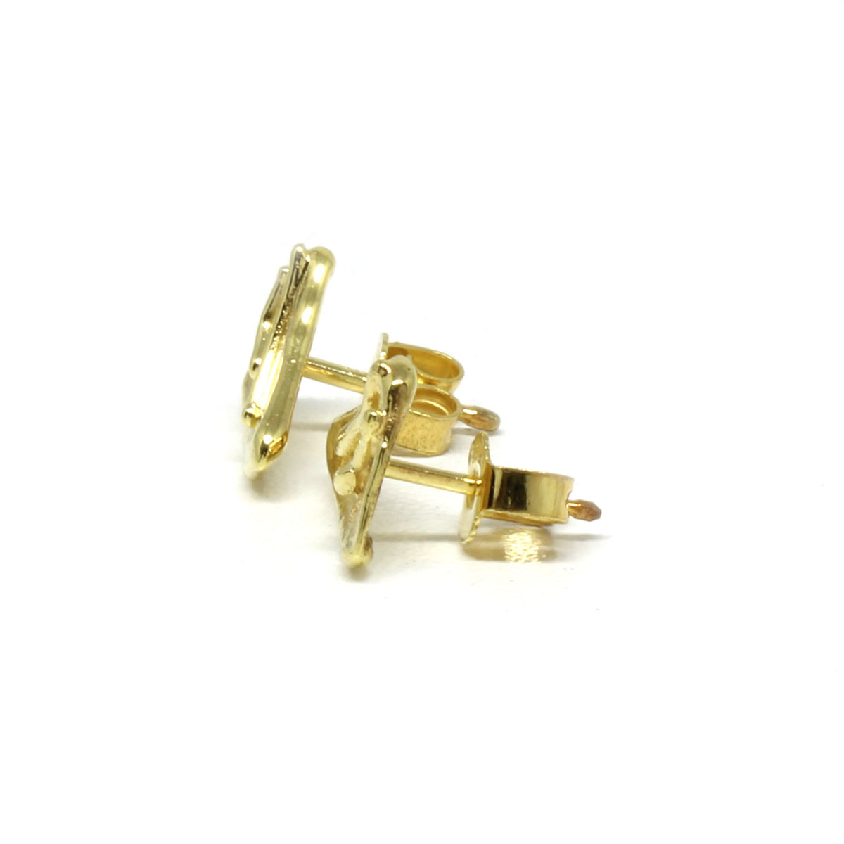Diese meisterhaften Ohrstecker sind aus 333er Gelbgold angefertigt. Wir haben sie selbst entworfen und in unserer kleinen Werkstatt hergestellt. Sie haben eine gefällige Form und sind mit unserer speziellen Oberflächenstruktur versehen. Die Verbindung aus polierten und mattierten Oberflächen verleihen dem Ohrring seinen Zauber.