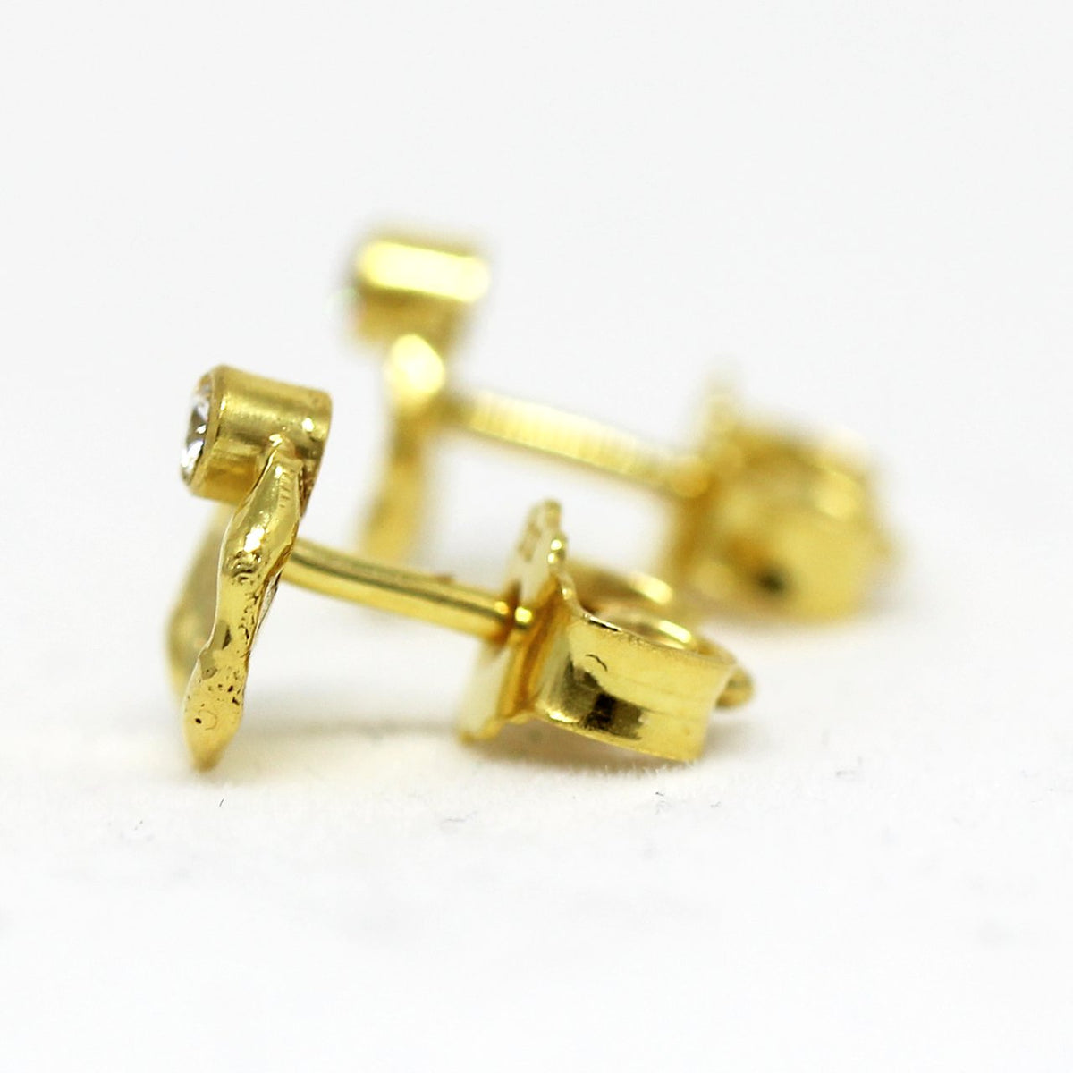 Dieser kreative Ohrschmuck ist wie so vieles von uns Handgemacht. Wir haben die Stecker aus 333er Gelbgold gefertigt und mit einem kleinen Zirkonia veredelt. Mit ihrer ausgefallenen Oberflächenstruktur wirken sie besonders schön und man kann sie sehr vielseitig tragen.
