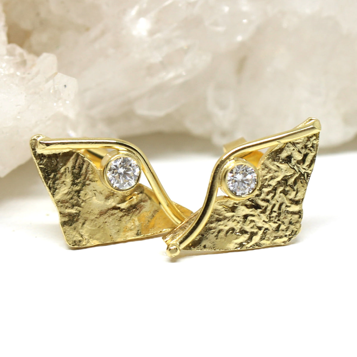 Ein edles und hochwertiges Schmuckstück das zugleich modern und klassisch wirkt. Die aus 585er Gelbgold hergestellten Ohrstecker sind mit insgesamt 0,20 ct TwSi Brillanten ausgefasst. Sie sind sehr hochwertig in unserer Werkstatt geschmiedet und sehen getragen fantastisch aus.