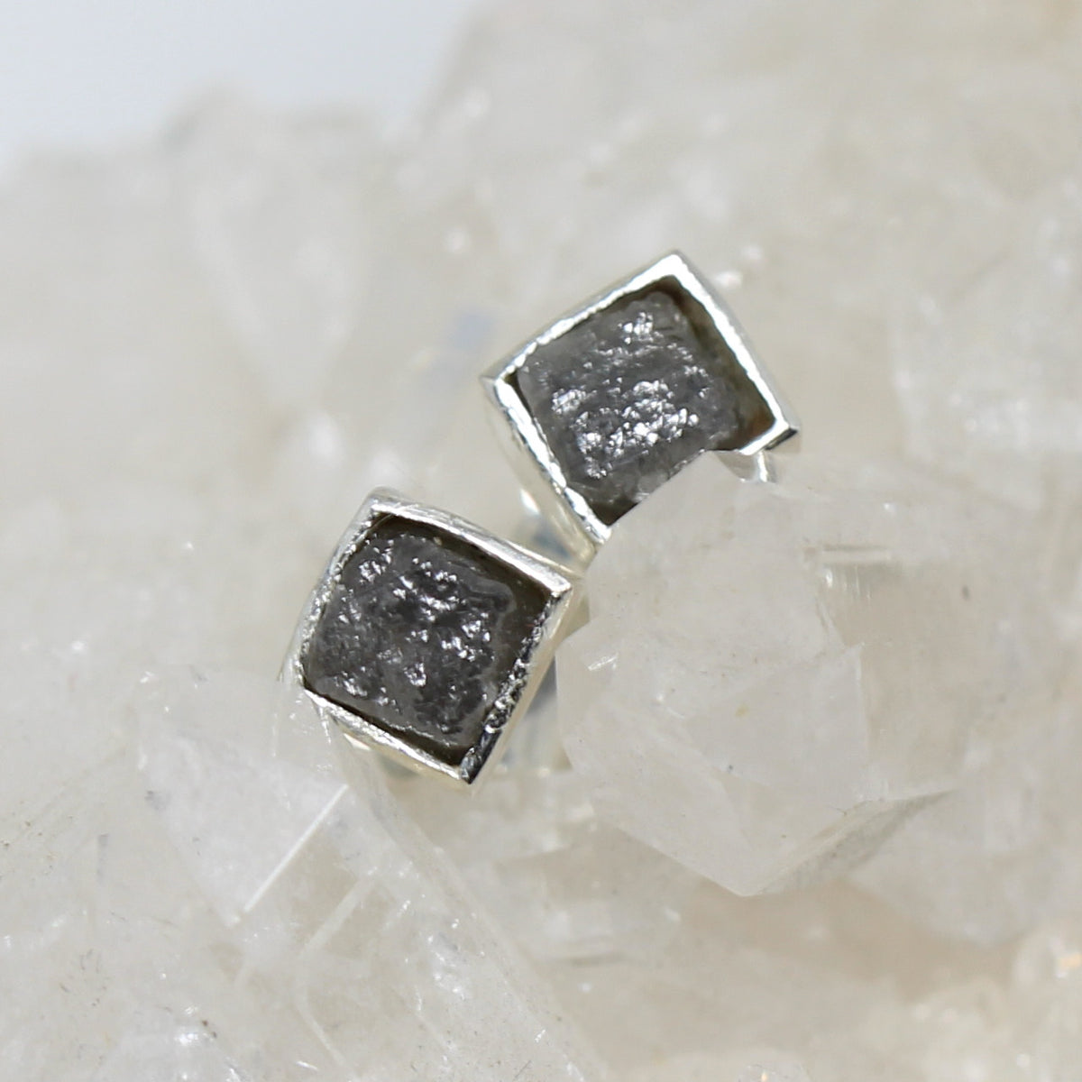 Diesen individuellen Ohrschmuck haben wir in eigener Werkstatt angefertigt. Die Fassung aus 925er Sterlingsilber ist schlicht und poliert. Somit kommt der Edelstein ideal zur Geltung und kann sein "Feuer" optimal zum Ausdruck bringen. Wir haben bei diesem Ohrschmuck einen grauen Rohdiamanten verwendet. Beide Steine haben zusammen 1,39 ct.