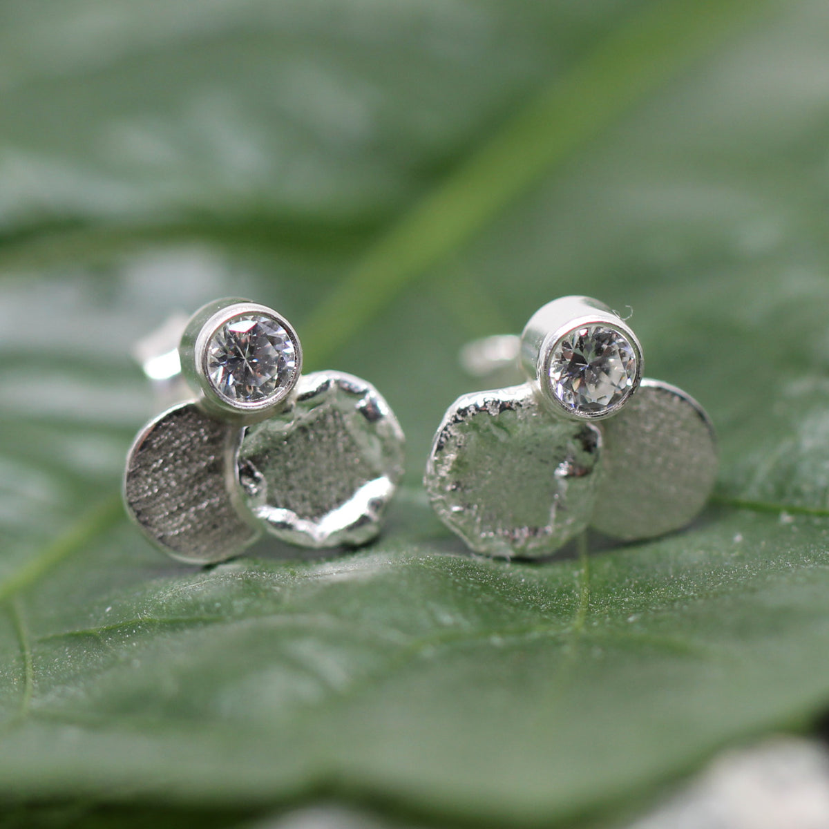 Diese handgefertigten Ohrstecker aus 925er Sterlingsilber sind ein Design von Schmuckwiedu. Wir haben sie in unserer Werkstatt geschmiedet. Die spezielle Struktur zeigt die Goldschmiedekunst und verwandelt den Ohrschmuck in ein echtes Kunstwerk. Ein strahlender Zirkonia verleiht den letzten Schliff.