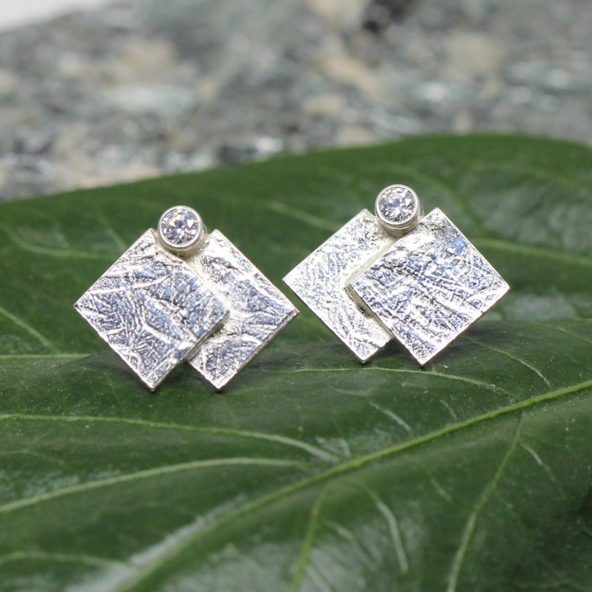 Diese schönen Ohrstecker sind aus 925er Sterlingsilber handgefertigt und sitzen perfekt am Ohr. Die Oberfläche ist mit einer seidenen Struktur bearbeitet und erhält somit eine spezielle Optik. Ein funkelnder Zirkonia ist ebenfalls eingearbeitet.