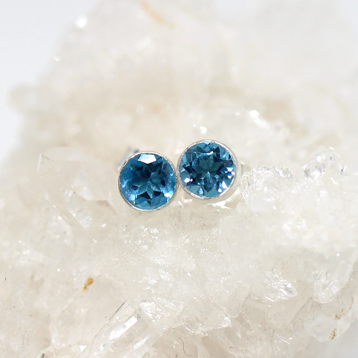 Schöne Ohrstecker mit sommerlichen Farben. Der Blautopas strahlt Frische und Freundlichkeit aus, er ist daher optimal für Silberschmuck geeignet. Bei diesem Modell wollten wir den Stein im Vordergrund behalten. Die Fassung ist aus 925er Sterlingsilber und poliert.