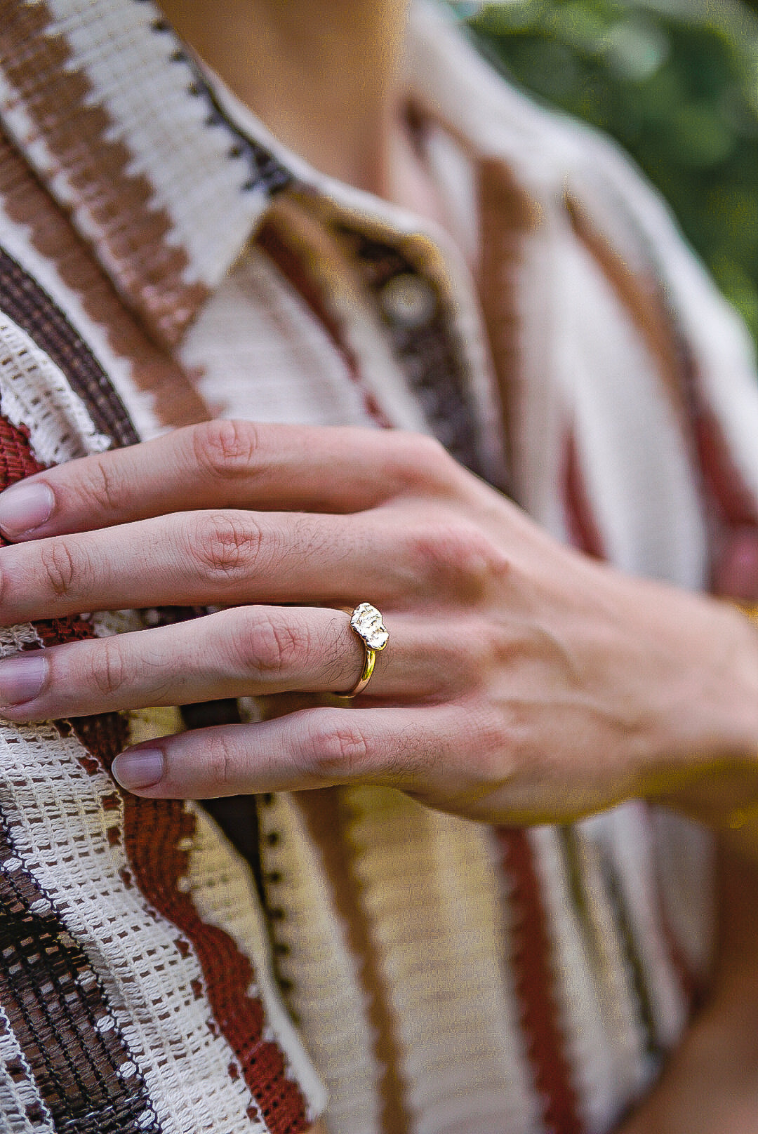 Diesen Ring haben wir aus 333er Gelbgold sehr fein und dezent angefertigt. Er ist unglaublich angenehm zu tragen und schmiegt sich perfekt an. Mit seiner Leichtigkeit und dem kreativen Design ist dieser Ring ein absolutes Lieblingsstück.