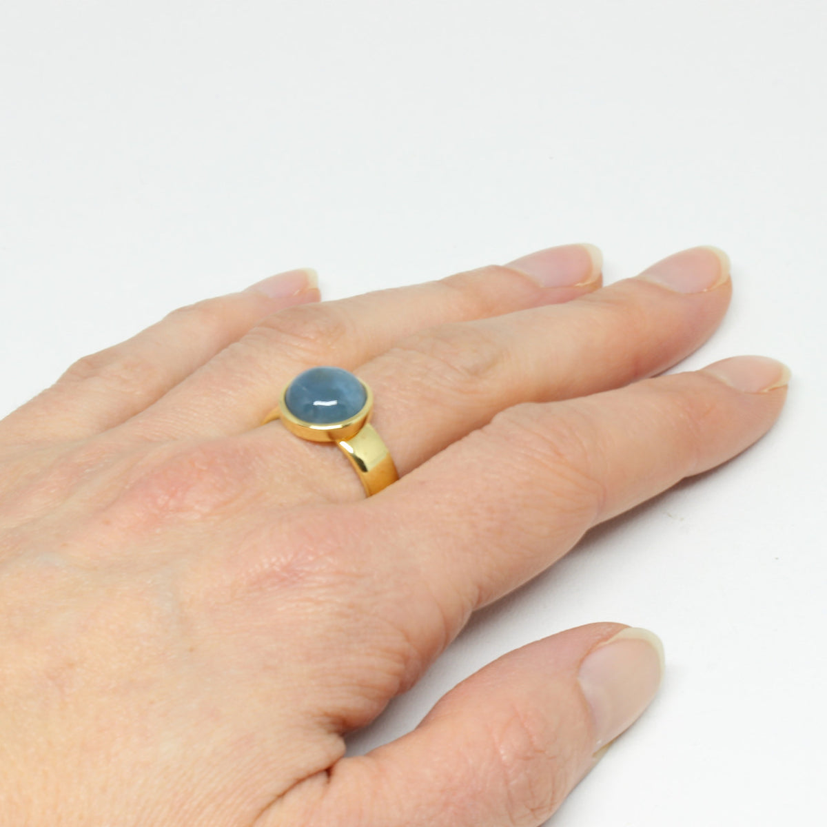 Dieses neue, doch sehr klassische Schmuckstück haben wir selbst aus 333er Gelbgold angefertigt. Es ist ein zeitloser Ring den man immer wieder gerne anschaut und trägt. Der Fokus bei diesem Stück richtet sich auf den blauen Aquamarin. Der Stein harmoniert hervorragend zum gelben Gold und macht ihn zu einem edlen Schmuckstück.