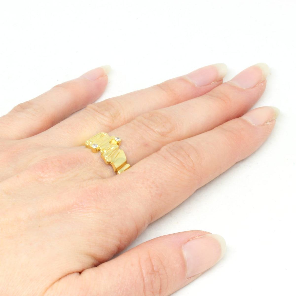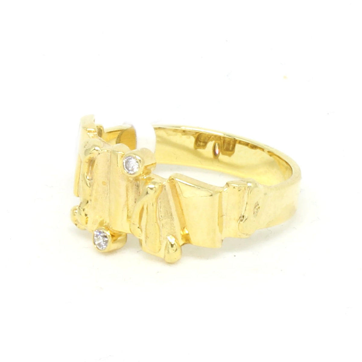 Diesen ansprechenden Goldring haben wir selbst kreiert und angefertigt. Er wurde in unserer Werkstatt aus 333er Gelbgold hergestellt. Seine Einzigartige Bearbeitungsart macht ihn zu einem echten Unikat. Man erkennt sofort das dieses Schmuckstück keine Massenware, sondern echte Goldschmiedearbeit ist. Als kleinen Akzent haben wir zwei kleine Zirkonia eingearbeitet.