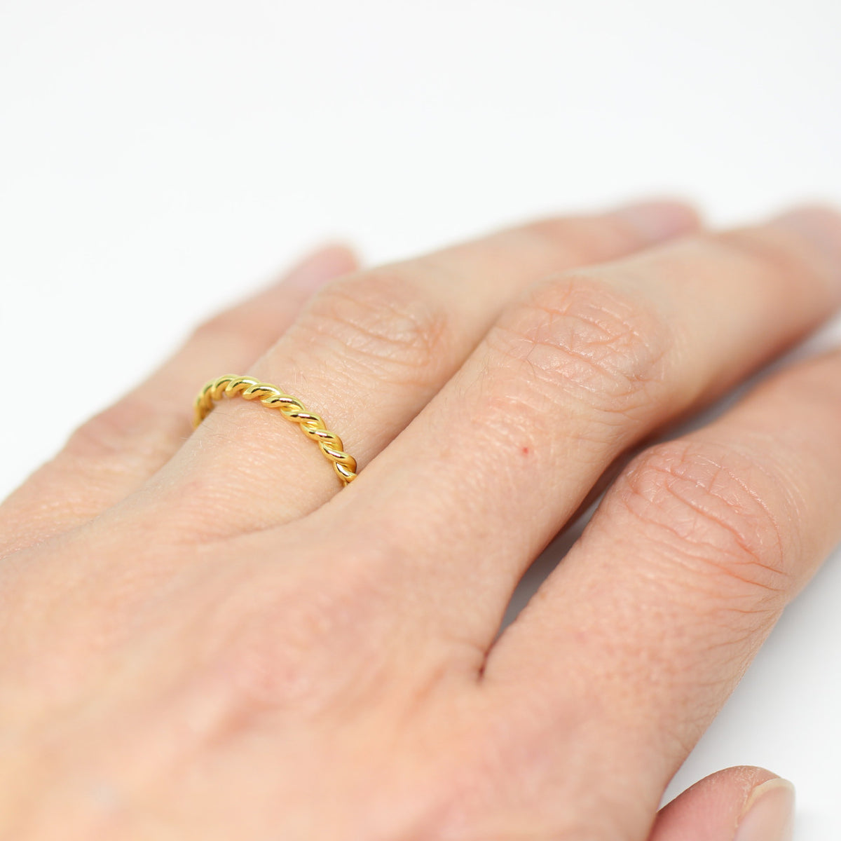 Diesen Kordelring kannst du zwischen 333er und 585er Gelbgold auswählen. Es ist ein zeitloser Ring den man immer wieder gerne betrachtet und trägt. Der Blickfang bei diesem Stück richtet sich auf die unendlich verschlungene Optik. Dieses Model kannst du in den verschiedensten Varianten tragen. Unsere Kunden nehmen ihn gerne als Beisteckring zum Trauring, oder auch als Verlobungsring macht man mit diesem kreativen Schmuckstück vieles richtig. Abgesehen davon passt er perfekt zu Silberringen um Ihnen den Bicoloreffekt zu verleihen.