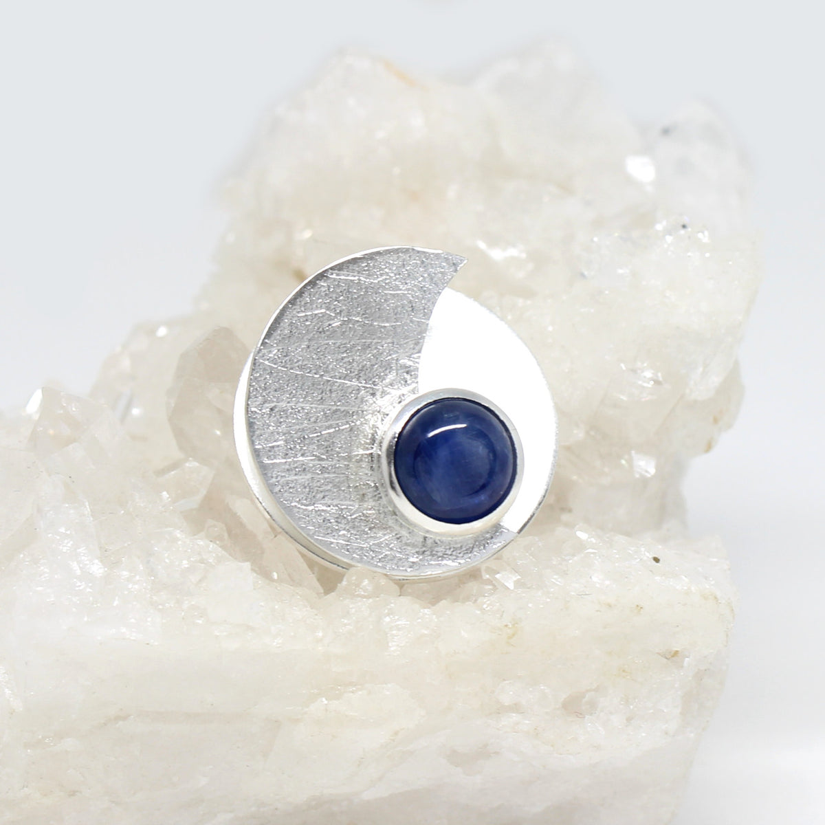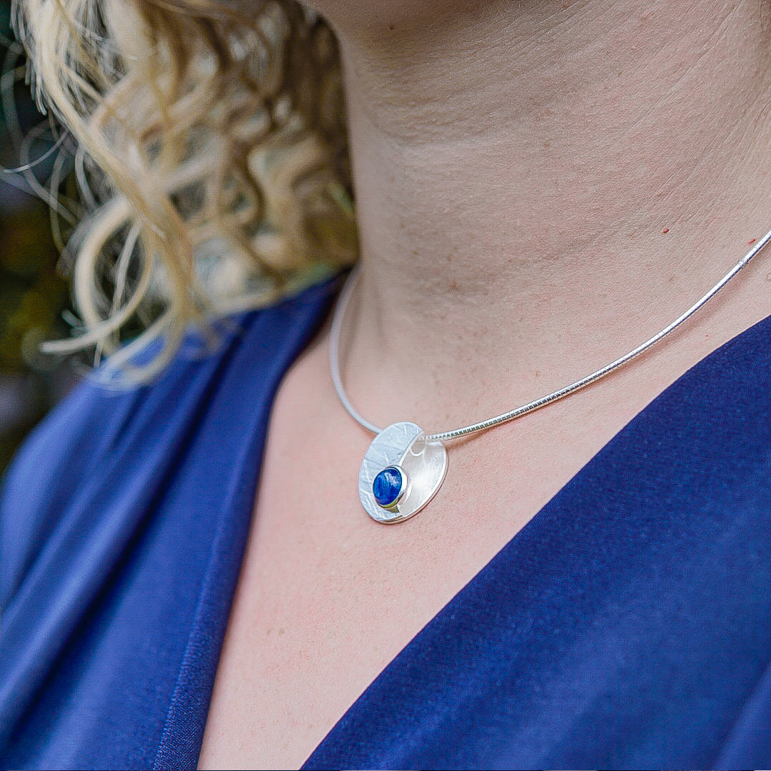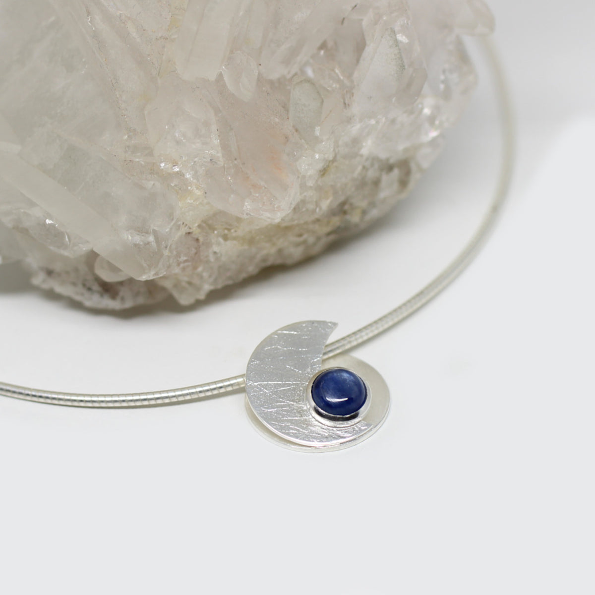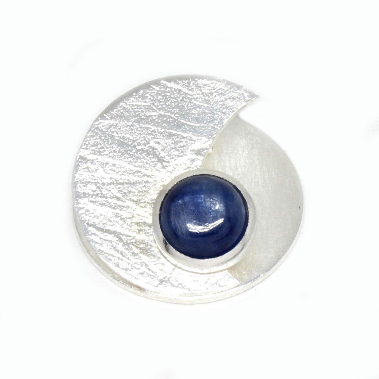 Schöner Anhänger aus 925er Sterlingsilber mit Disthen. Dieses besondere Schmuckstück ist selbst entworfen und in unserer kleinen Goldschmiede hergestellt. Mit viel Liebe zum Detail und einem bezaubernden Schmuckstein ist ein Stück entstanden, das sich besonders gut zu Jeanskleidung tragen lässt. Der Disthen ist ein in verschiedenen Blauschattierungen schimmernder Halbedelstein. Kombiniert mit dem Sterlingsilber ist dies ein wundervolles Schmuckstück, das man zu jedem Anlass super tragen kann.