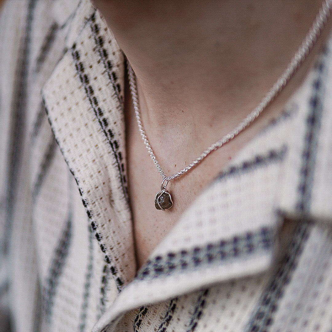 Sie lieben Natursteine in unbehandelter Form? Dann ist dieser zauberhafte, Diamantanhänger genau das Richtige. Der Edelstein ist nicht geschliffen, sondern lediglich in eine 925er Sterlingsilber Einfassung gewickelt. Der Diamant kann somit ideal seine Eigenschaften verbreiten. Er wird dem Sternzeichen Löwe, Widder und Steinbock zugeordnet.