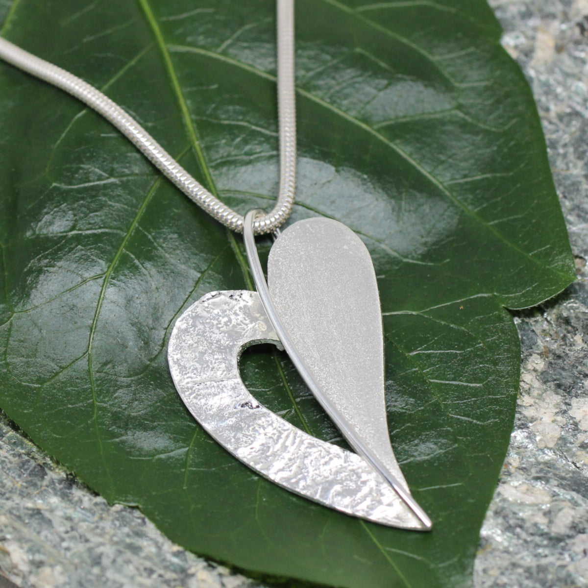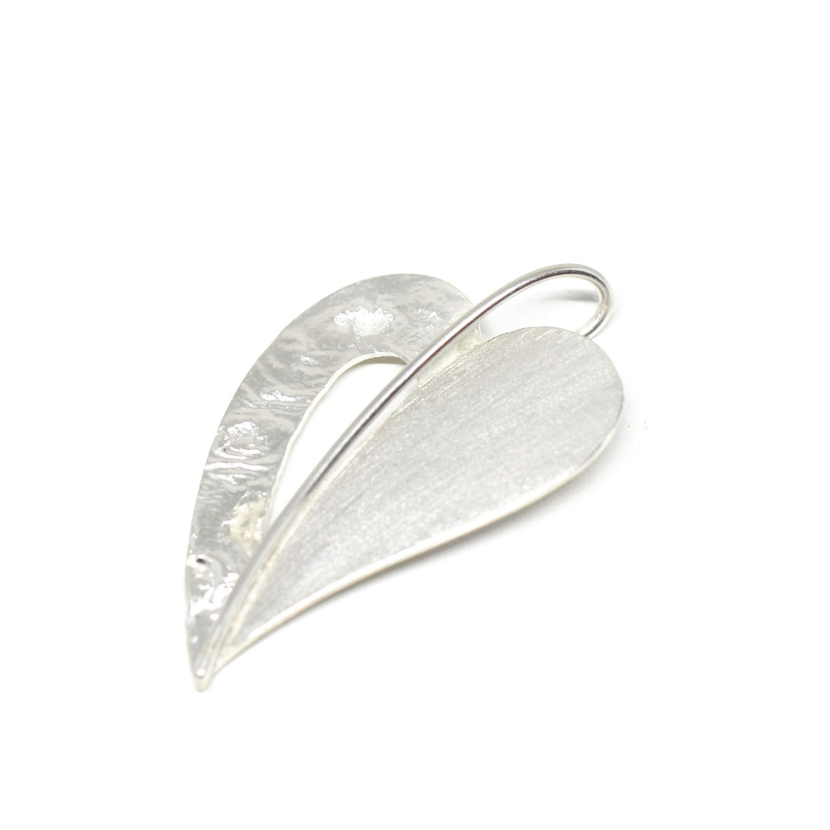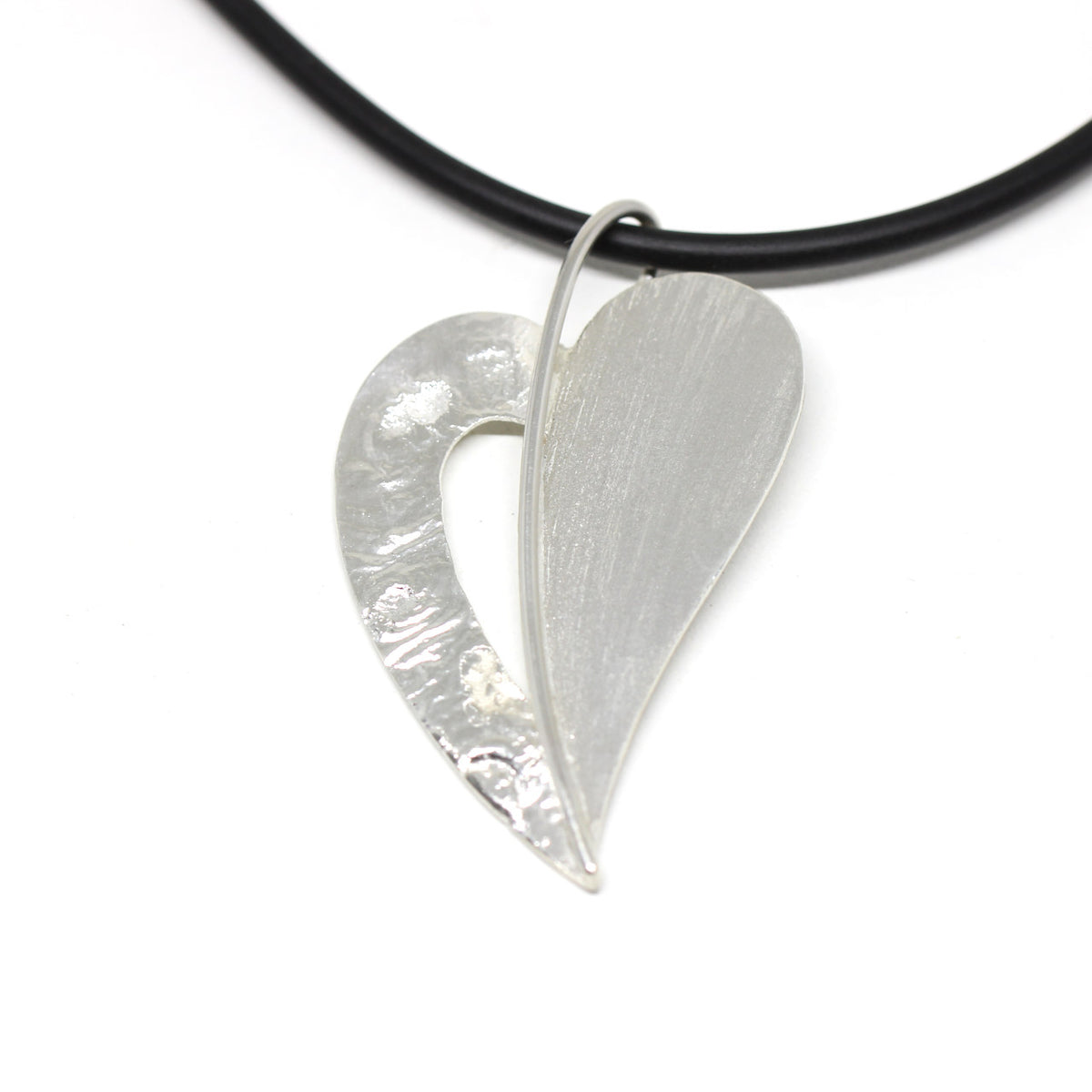 Sie suchen den idealen Anhänger für eine lange Ketten, dann ist dieses handgefertigte Herz aus 925er Sterlingsilber genau das richtige für Sie. Die besondere Form und die verschieden Oberflächen machen den Anhänger zu einem besonderen Schmuckstück.