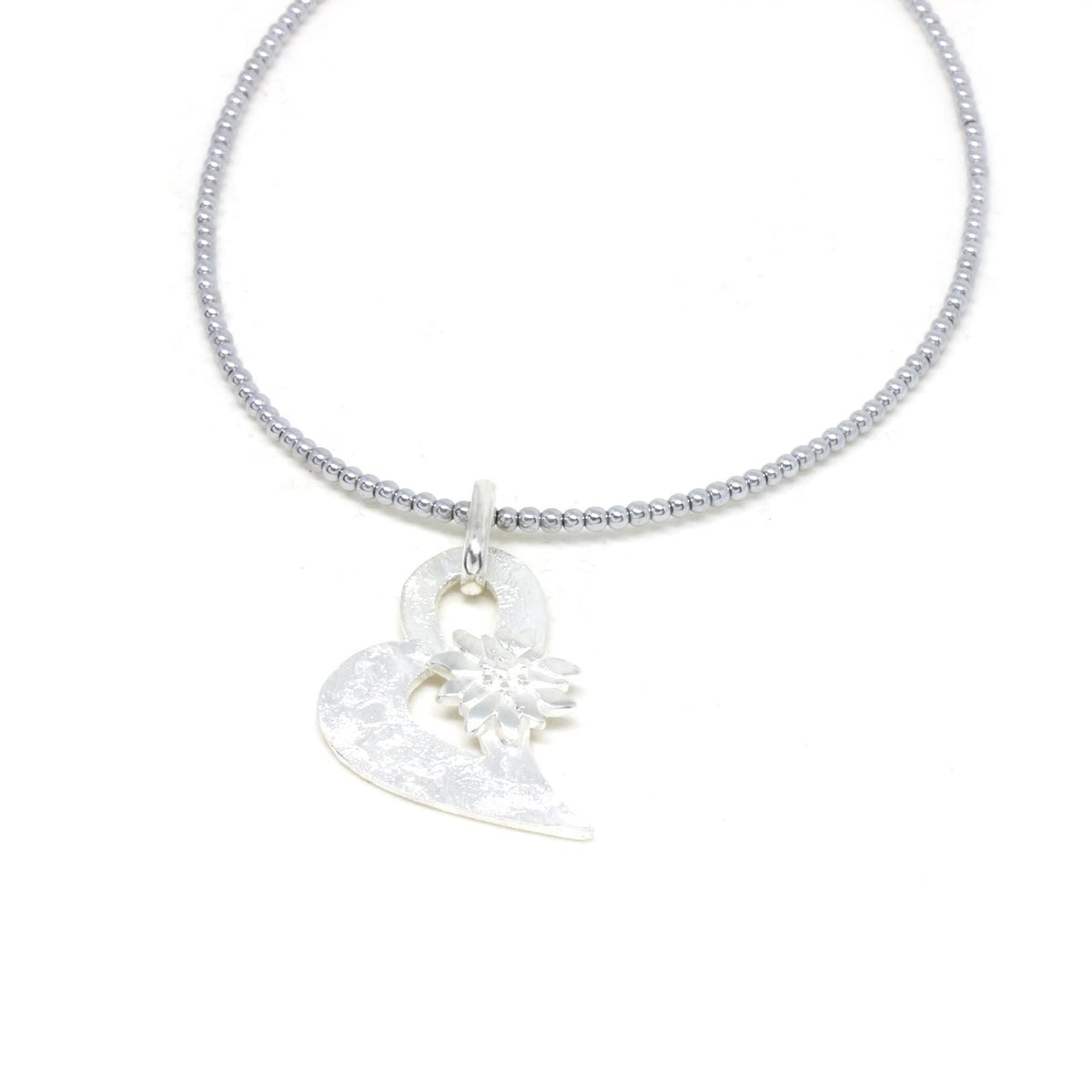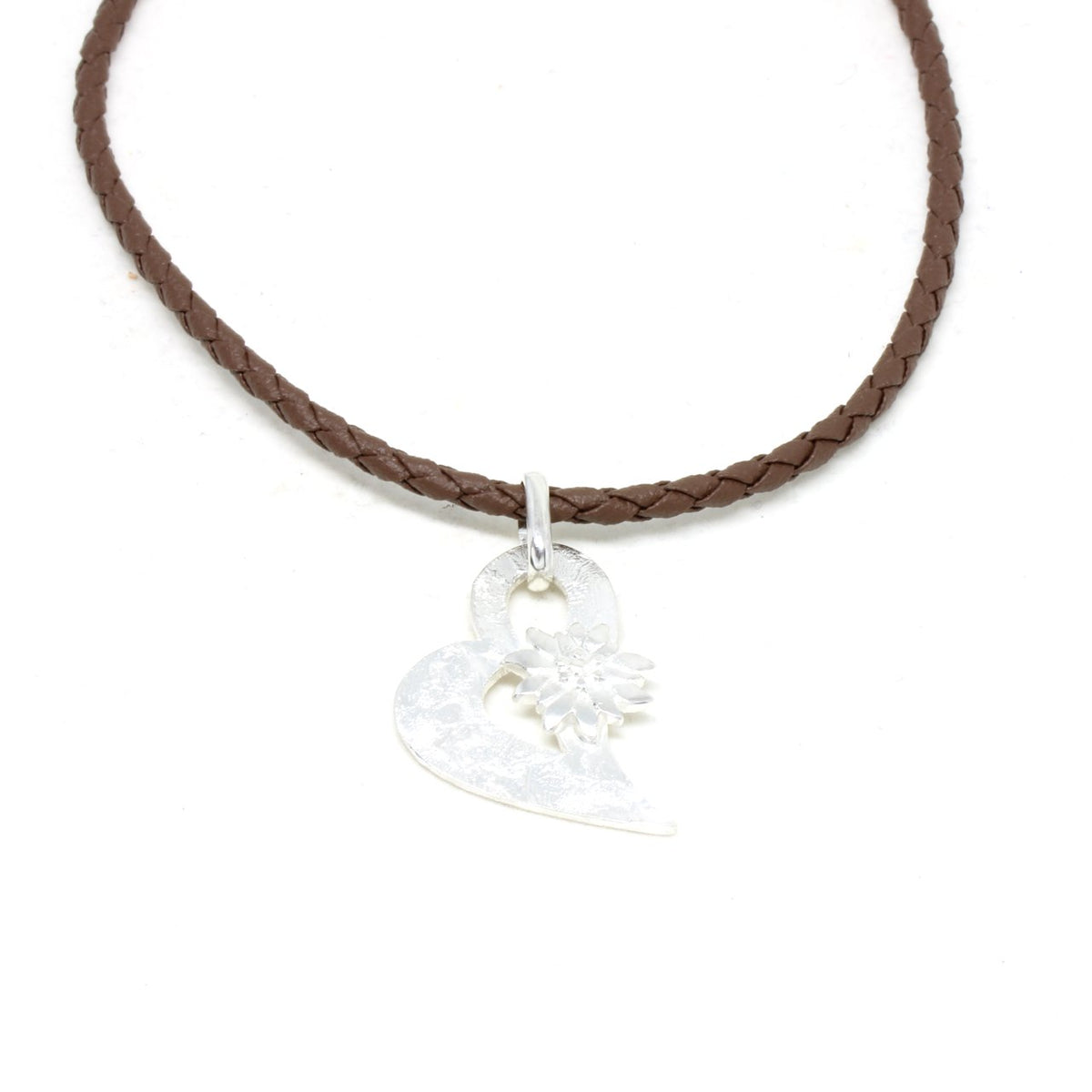 Passend zur Festzeit lassen wir das Motiv "Edelweiß" in neuem Licht erstrahlen! Die traditionelle Blume kombiniert mit der Herzform und unserer speziellen Oberflächenstruktur, ergibt ein Schmuckstück, das sich von den vielen Modeschmuckketten besonders abhebt. Es veredelt jedes Dirndl ohne von den schönen Stoffen der Kleider abzulenken. Das 925er Sterlingsilber strahlt auf der Haut und wird besonders in einer Lederkette hervorgehoben. Wir haben das Schmuckstück in unserer kleinen Werkstatt hergestellt.