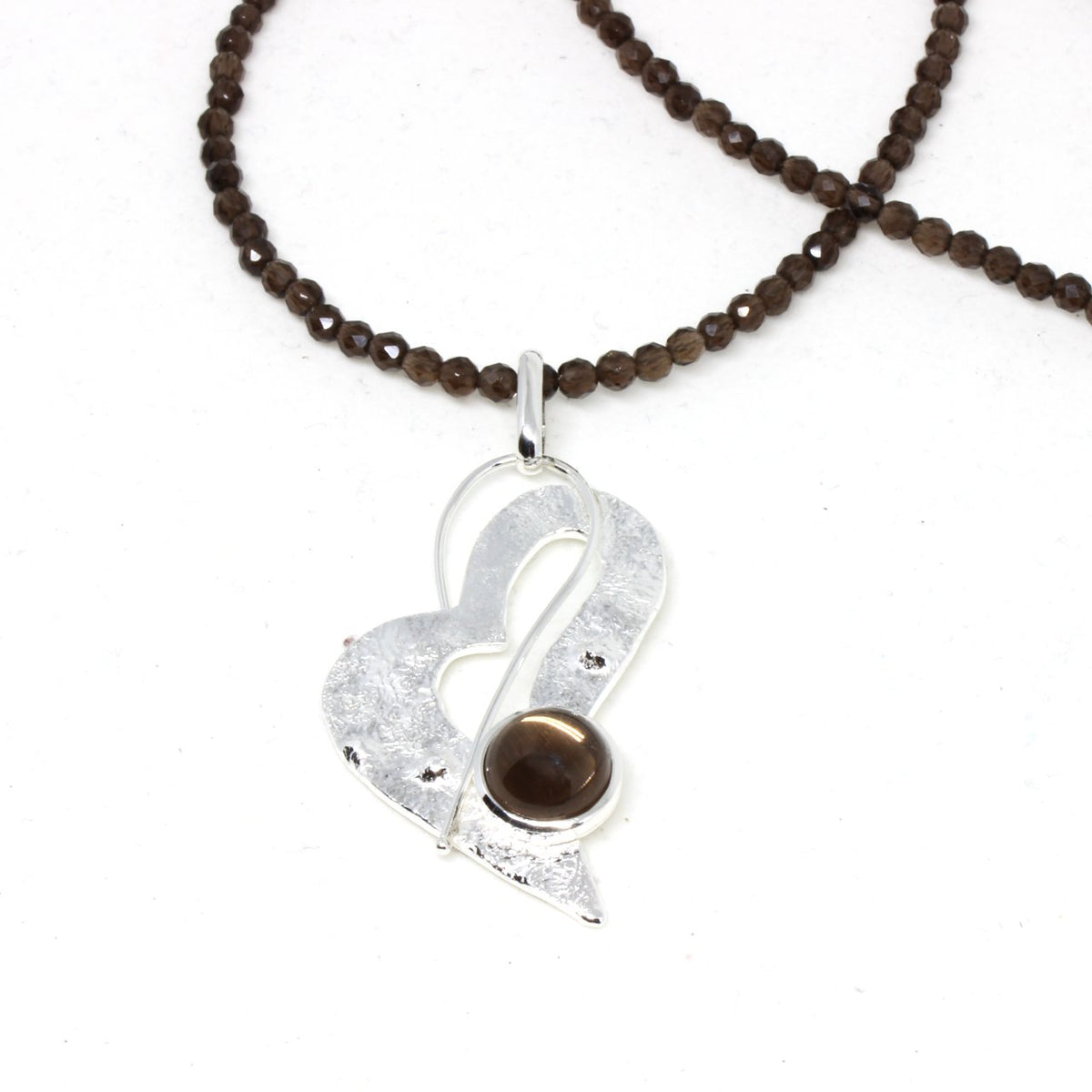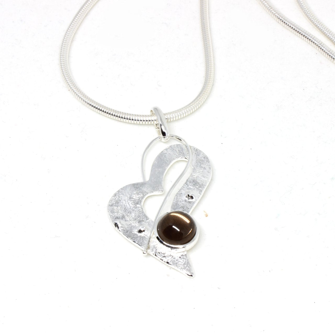 Herzen zählen einfach zu den beliebtesten Formen im Schmuckbereich. Sie sagen soviel über ein Schmuckstück aus und verleihen ihnen immer Ausstrahlung. Dieses Herz haben wir jedoch optimiert und mehrere Akzente gesetzt. Die Oberflächenstruktur ist aufgerauht und somit sportlich-elegant gehalten. Der eingefasste Stein ist ein Rauchquarz der perfekt zu jedem Hauttyp getragen werden kann. Das Schmuckstück ist aus 925 Sterlingsilber von unseren Goldschmieden angefertigt.
