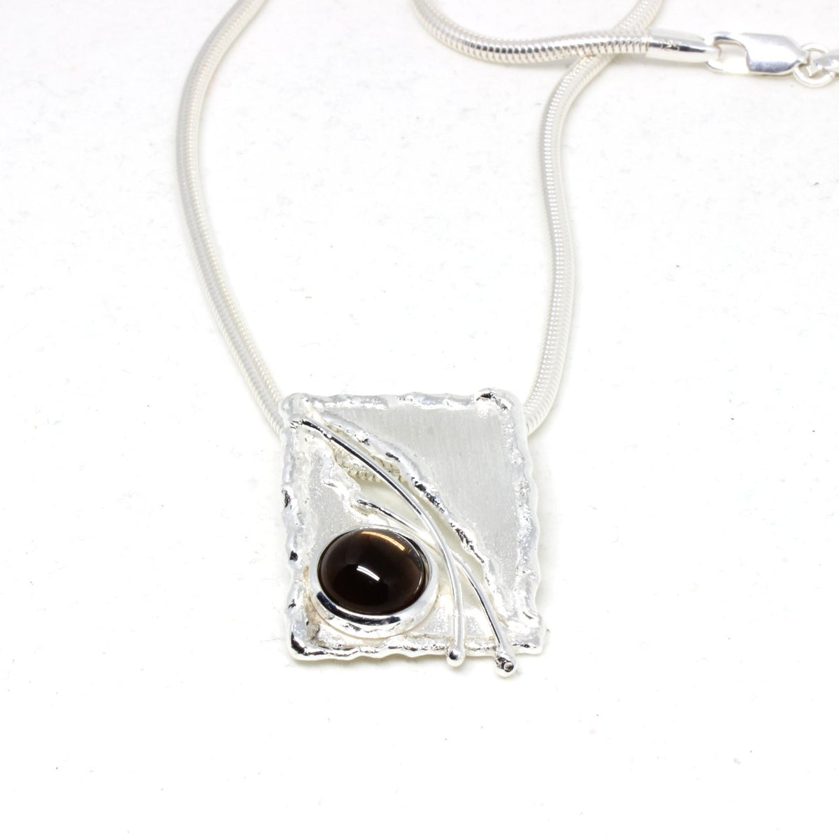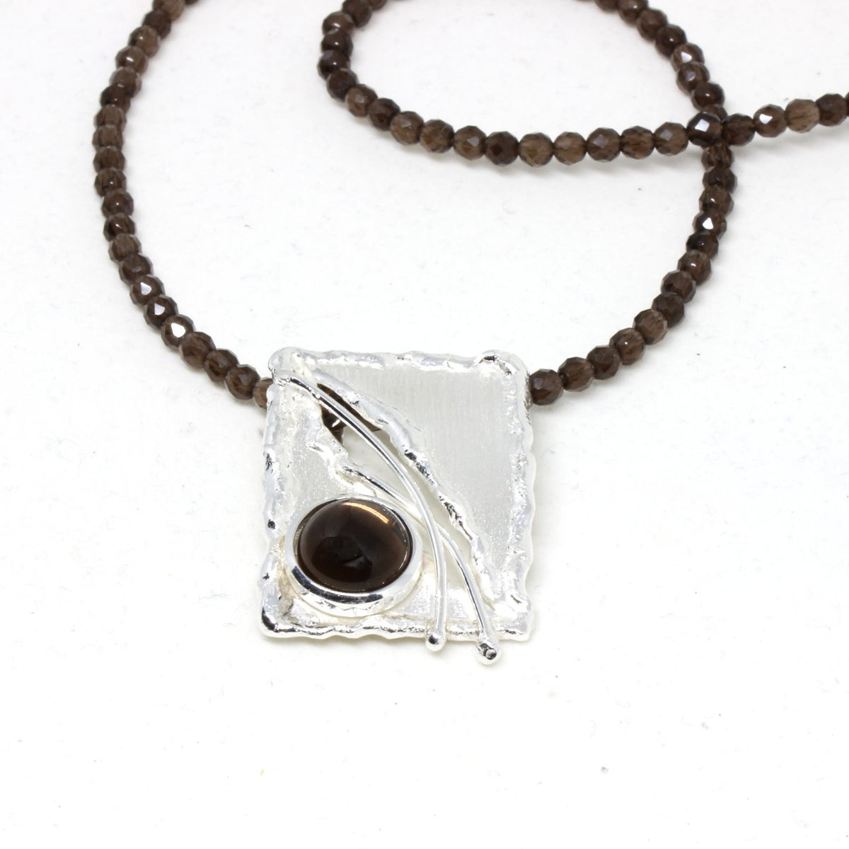 Diese Zusammenstellung ist ein wahrer Blickfang! Der dunkle Rauchquarz vereint mit dem hellen Silber zieht Blicke magisch an. Dieser verzaubernde Anhänger ist in unserer kleinen Werkstatt entstanden. Mit viel Liebe zum Detail ist wie immer ein kleines Kunstwerk entstanden. Als Material wählten wir 925 Sterlingsilber das mit unserer speziellen Technik bearbeitet ist. Die Besonderheit des Schmuckstückes ist der braune Rauchquarz.