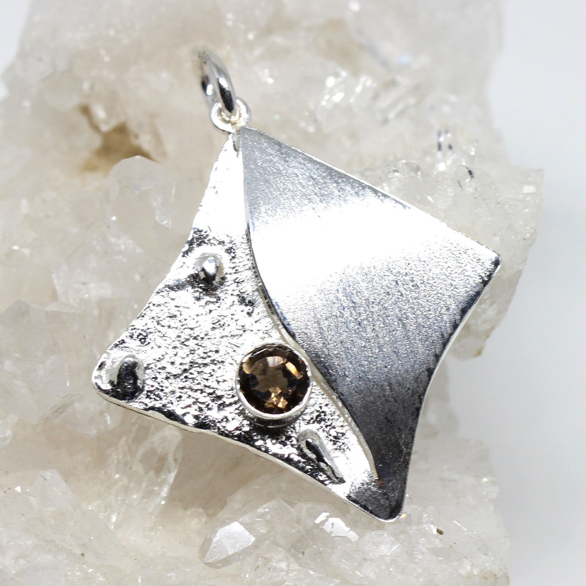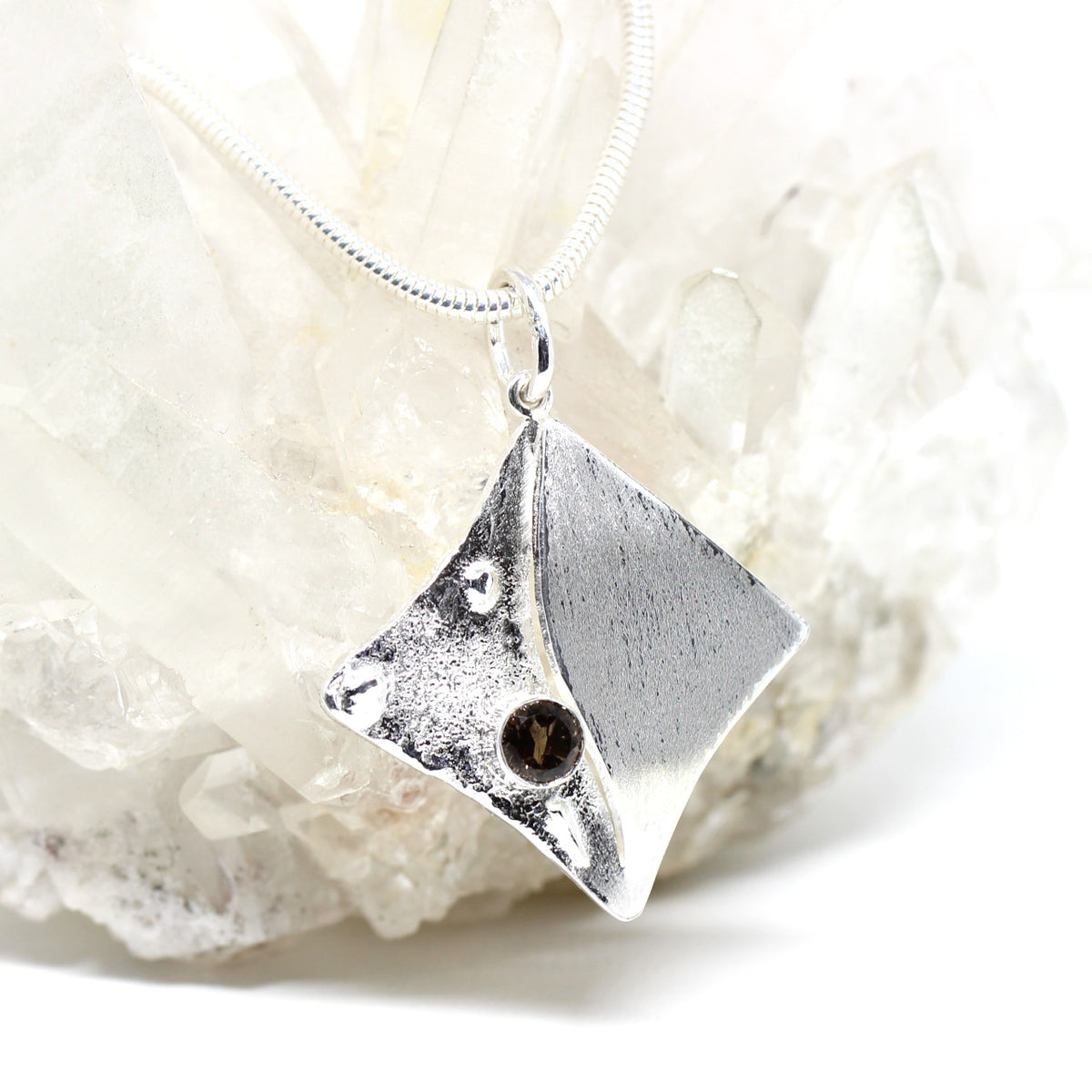 Diese Zusammenstellung ist ein wahrer Blickfang! Der dunkle Rauchquarz vereint mit dem hellen Silber zieht Blicke magisch an. Dieser verzaubernde Anhänger ist in unserer kleinen Werkstatt entstanden. Mit viel Liebe zum Detail ist wie immer ein kleines Kunstwerk entstanden. Als Material wählen wir 925er Sterlingsilber, das mit unserer speziellen Technik bearbeitet wird. Die Besonderheit des Schmuckstücks ist der braune Rauchquarz.