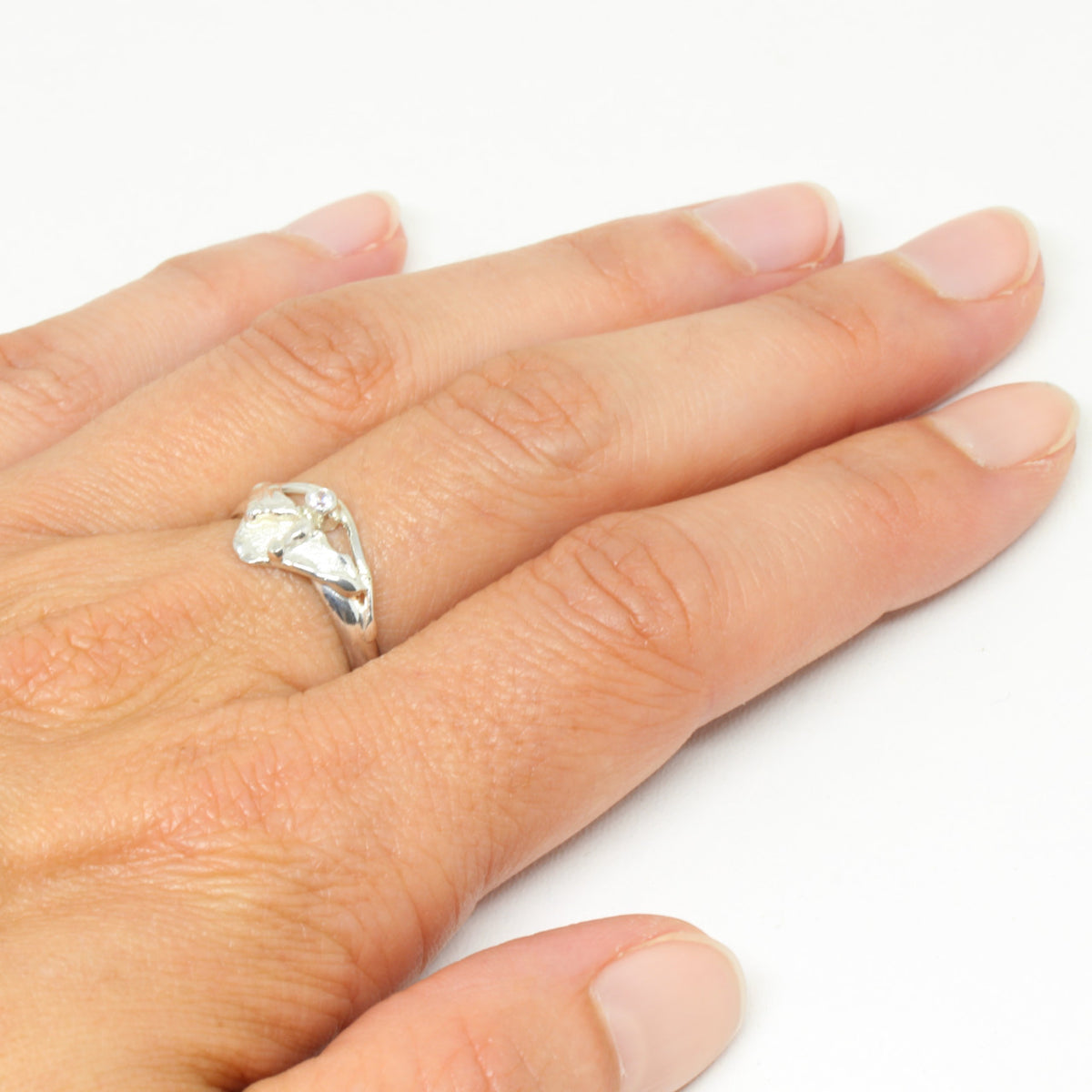 Eines unserer neusten Entwürfe ist dieses tolle Schmuckstück. Es handelt sich um einen aus 925er Sterlingsilber angefertigten Ring. Wir haben ihn in unserer Goldschmiede hergestellt. Das Besondere ist unsere spezielle Struktur die den Ring in ein handwerkliches Einzelstück verwandelt. Ein strahlender Zirkonia verleiht ihm Eleganz.