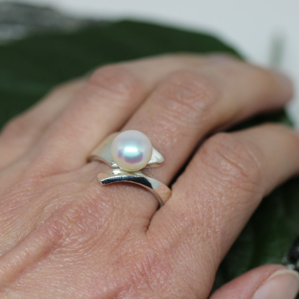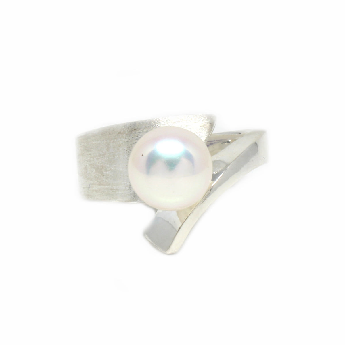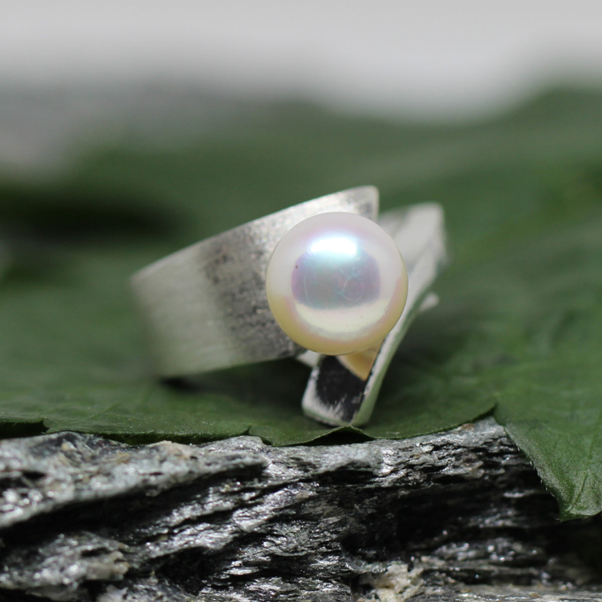 Diesen stylischen Ring haben wir in unserer kleinen Manufaktur hergestellt. Das Schmuckstück ist aus 925er Sterlingsilber geschmiedet und die Oberfläche mattiert und poliert. Als Besonderheit haben wir eine Süßwasserperle eingefügt. Dieses Schmuckstück ist der ideale Begleiter durch den Alltag, da er sich zu jedem Outfit stylen lässt.