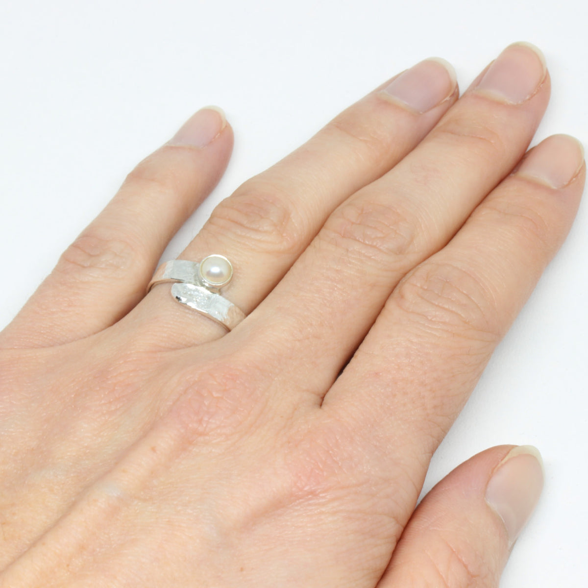 Eines unserer neuesten Entwürfe ist dieses tolle Schmuckstück. Es handelt sich um ein Unikat aus 925er Sterlingsilber. Wir haben den Ring in unserer kleinen Goldschmiede hergestellt. Das Besondere ist die raffinierende Struktur vereint mit der aufregenden Süßwasserperle.