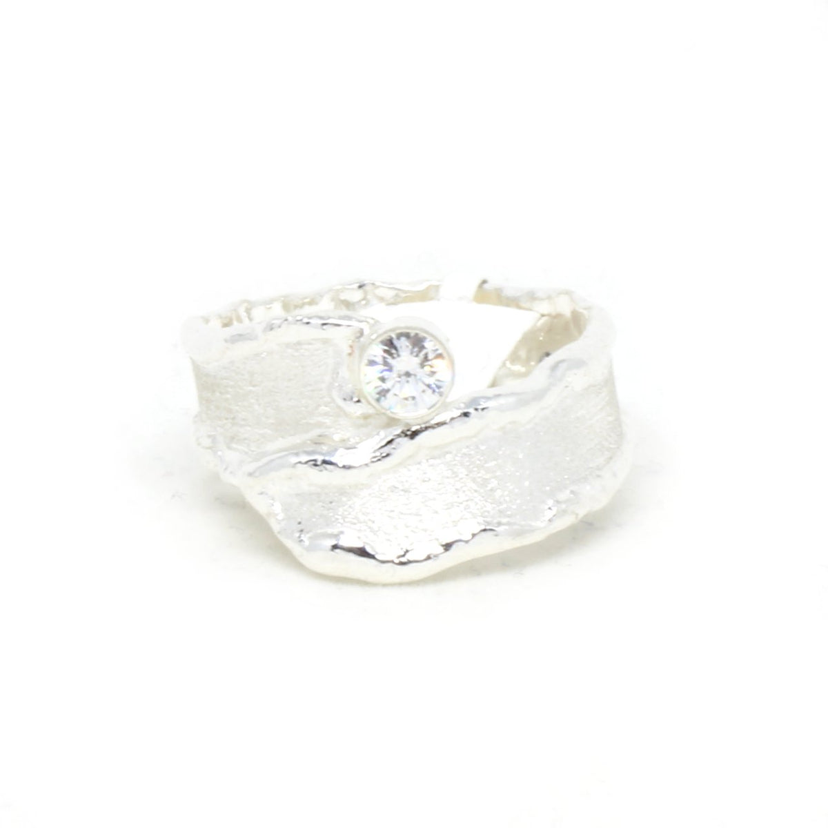 Eines unserer neusten Entwürfe ist dieses tolle Schmuckstück. Es handelt sich um einen aus 925 Sterlingsilber angefertigten Ring. Wir haben ihn in unserer kleinen Goldschmiede hergestellt. Das Besondere ist unsere spezielle Struktur die den Ring zu einem handwerklichen Klassiker werden lässt. Ein strahlender Zirkonia verleiht ihm Eleganz.
