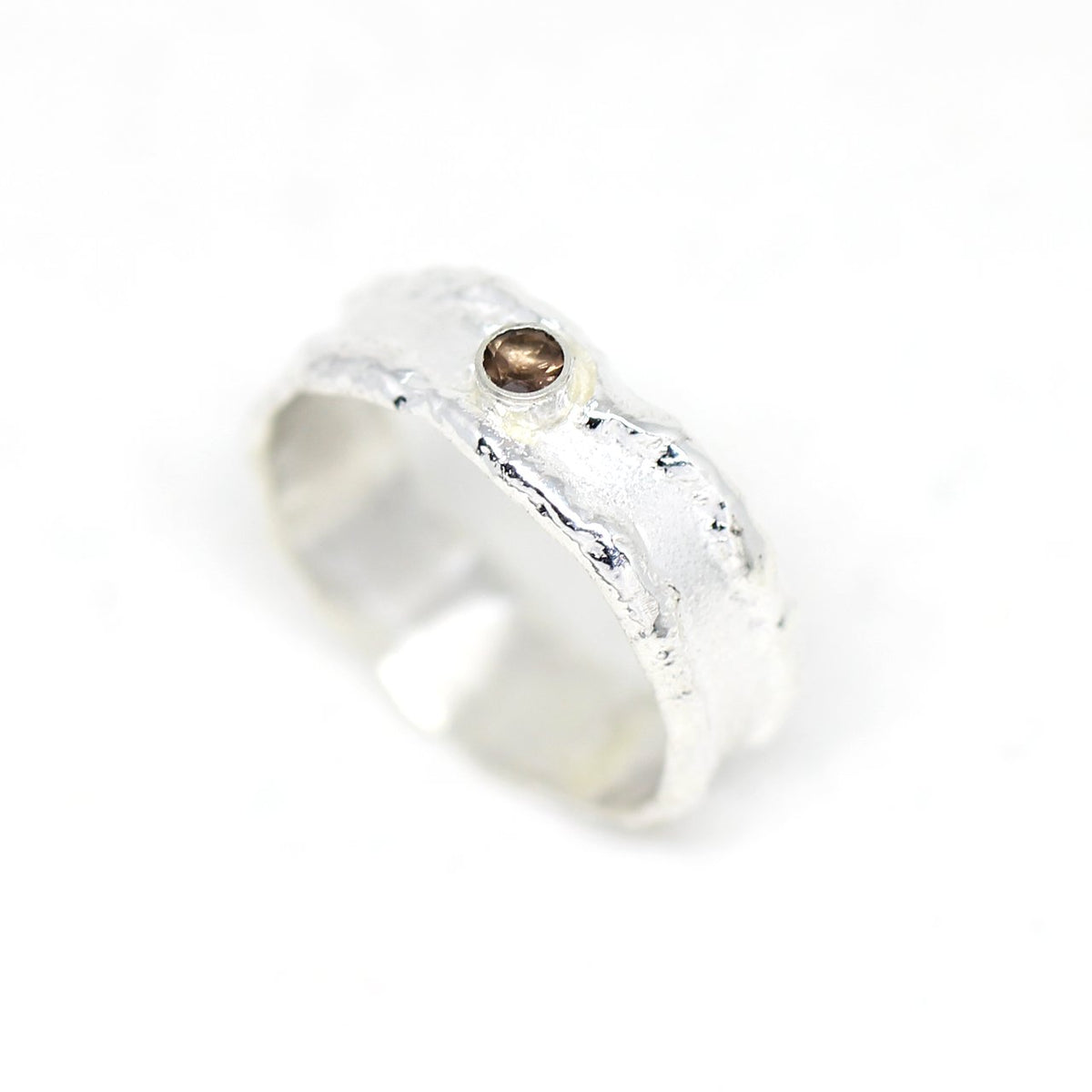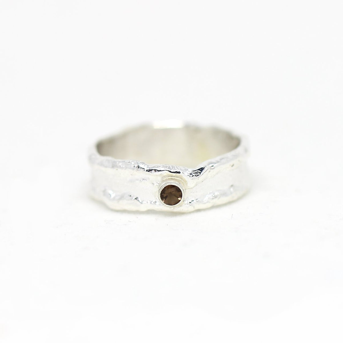 Eines unserer neusten Entwürfe ist dieses tolle massive Schmuckstück. Es handelt sich um einen aus 925 Sterlingsilber angefertigten Ring. Wir haben ihn in unserer kleinen Goldschmiede hergestellt. Das Besondere ist unsere spezielle Struktur die den Ring zu einem handwerklichen Klassiker werden lässt. Der eingearbeitete Rauchquarz verleiht ihm einen zusätzlichen Reiz die Blicke auf sich zu ziehen.