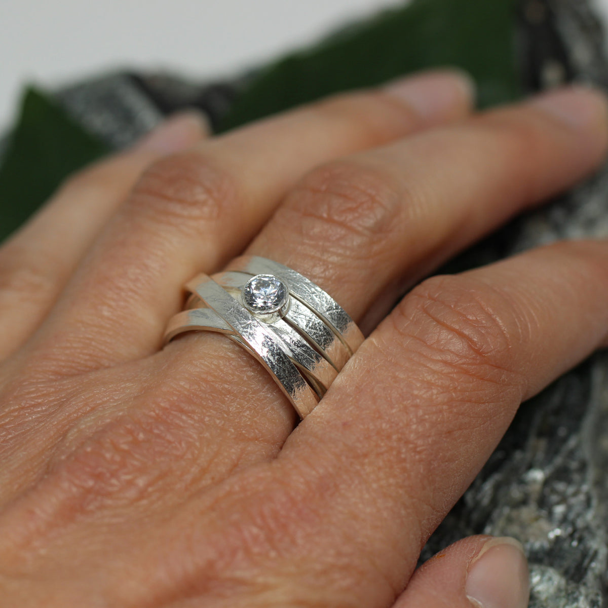 Dieses schöne Modell kommt frisch aus unserer Werkstatt. Mit der speziellen Oberflächentechnik kommt die Hnadwerkskunst gut zur Geltung und hebt sich vom Standard hervor. Ein funkelnder Zirkonia rundet das Schmuckstück ab. Gefertigt ist der Ring aus 925er Sterlingsilber.