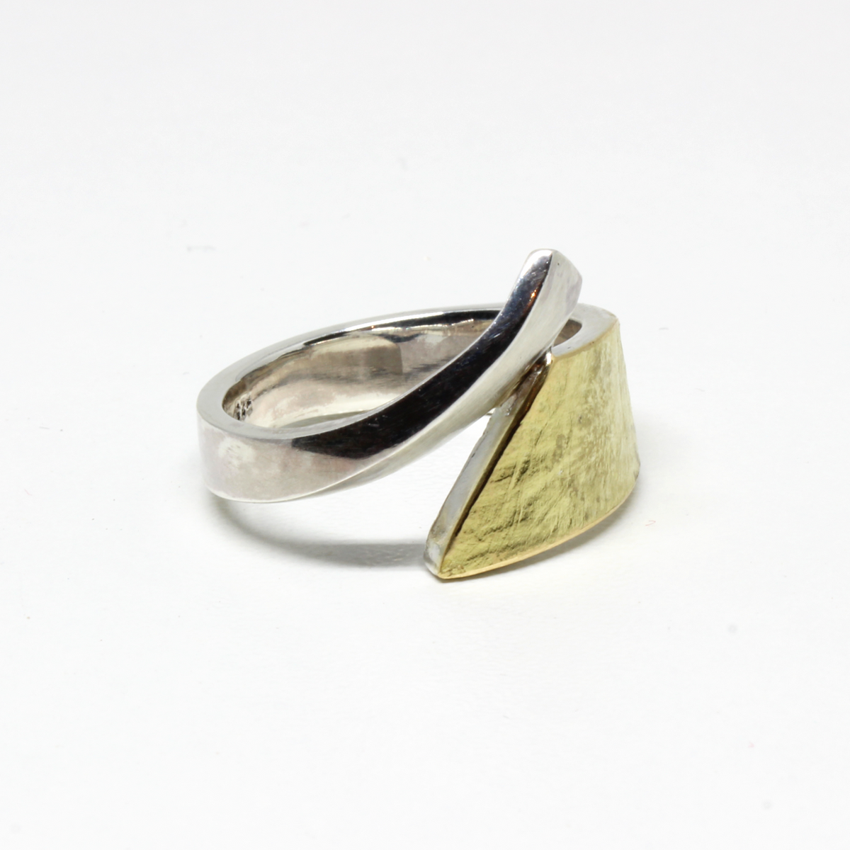 Dieses schöne Schmuckstück haben wir in unserer kleinen Goldschmiede hergestellt. Das Grundmaterial dieses Ringes ist 925er Sterlingsilber, das wir zum Teil mit 750er Gelbgold bearbeitet haben. Somit haben wir ein trendiges Stück gearbeitet das man hervorragend zu Silber und Goldschmuck tragen kann. Die Silberne Seite arbeiteten wir dabei mit einer anderen Oberflächenstruktur als das Gold, um noch einen deutlicheren Kontrast zu schaffen.