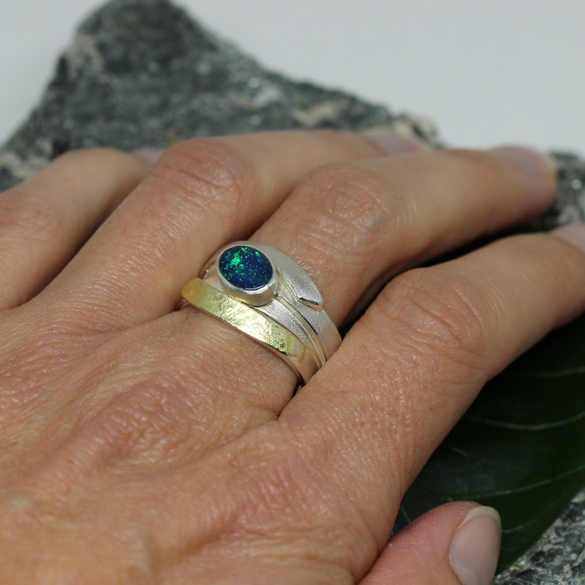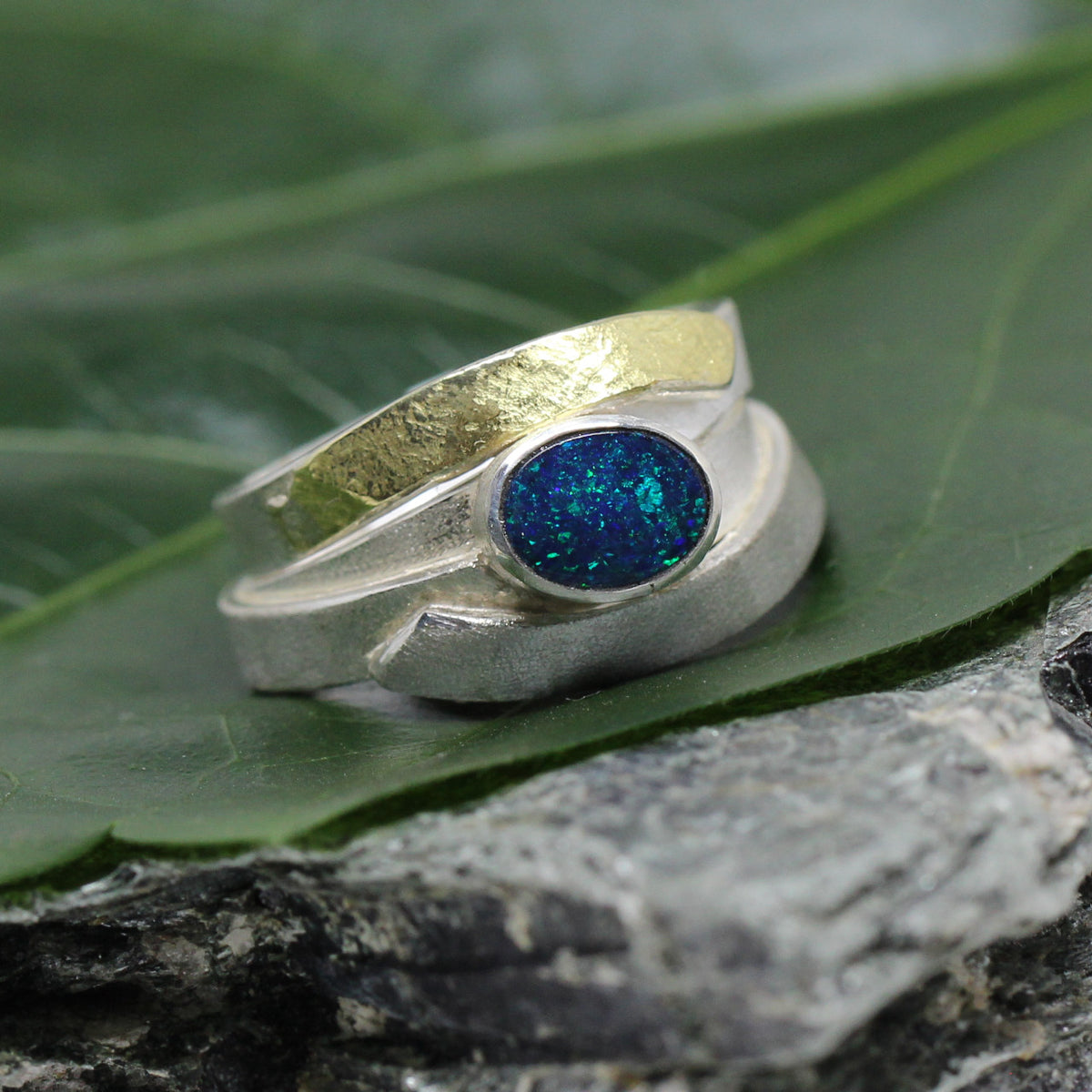 Silberring zweifarbig mit Opal