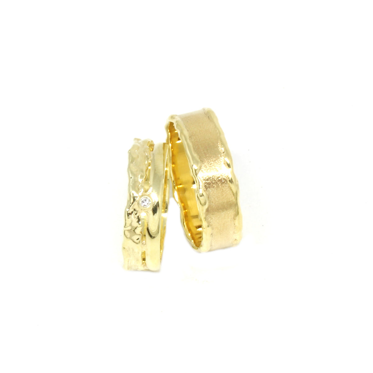 Diese Ringe zeigen einmal deutlich wie passend und doch unterschiedlich Trauringe sein können. Den Herrenring haben wir in traditioneller Form verarbeitet, den Damenring jedoch deutlich verspielter und aufregender. Diese beiden vereint ergeben unvergessliche Traumringe die auch noch nach vielen Jahren der Ehe toll und besonders aussehen.