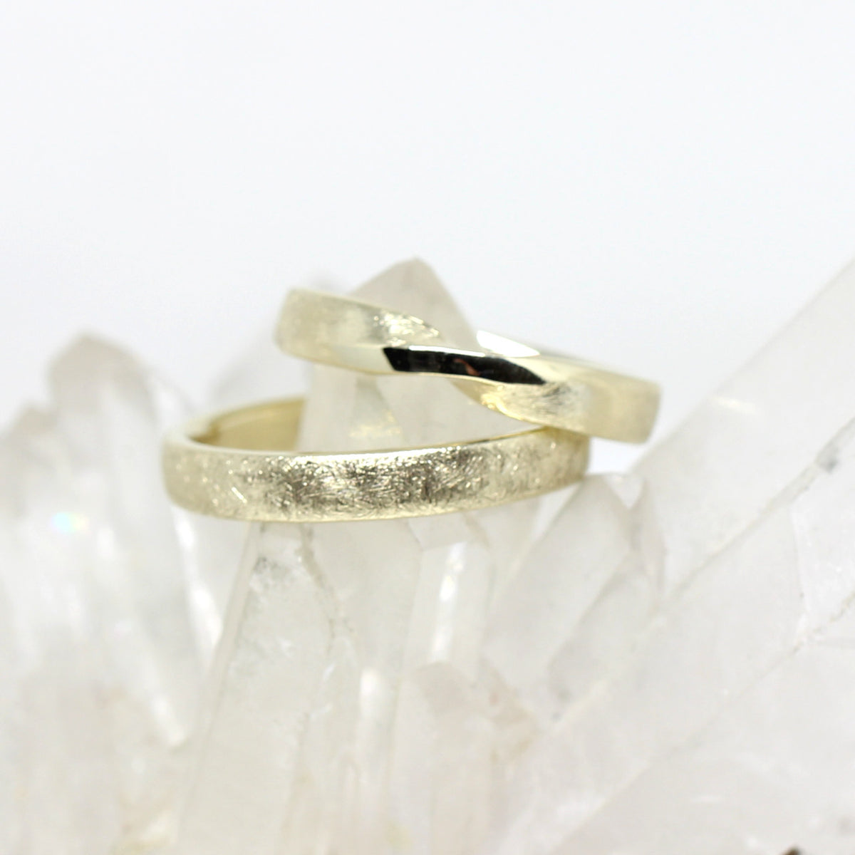 Diese wunderschönen Trauringe haben wir in unserer Werkstatt angefertigt. Das 333er Gelbgold haben wir in hochwertige Schmuckstücke verwandelt. Die individuelle Handarbeit sticht aus den üblichen Trauringmustern heraus und wird somit zu einem kreativen Schmuckstück.
